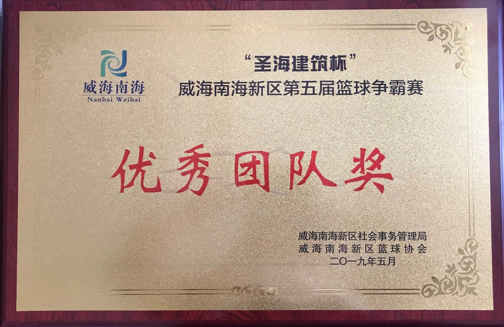 九州平台喜获“圣海建筑杯”威海南海新区第五届篮球争霸赛优秀团队奖