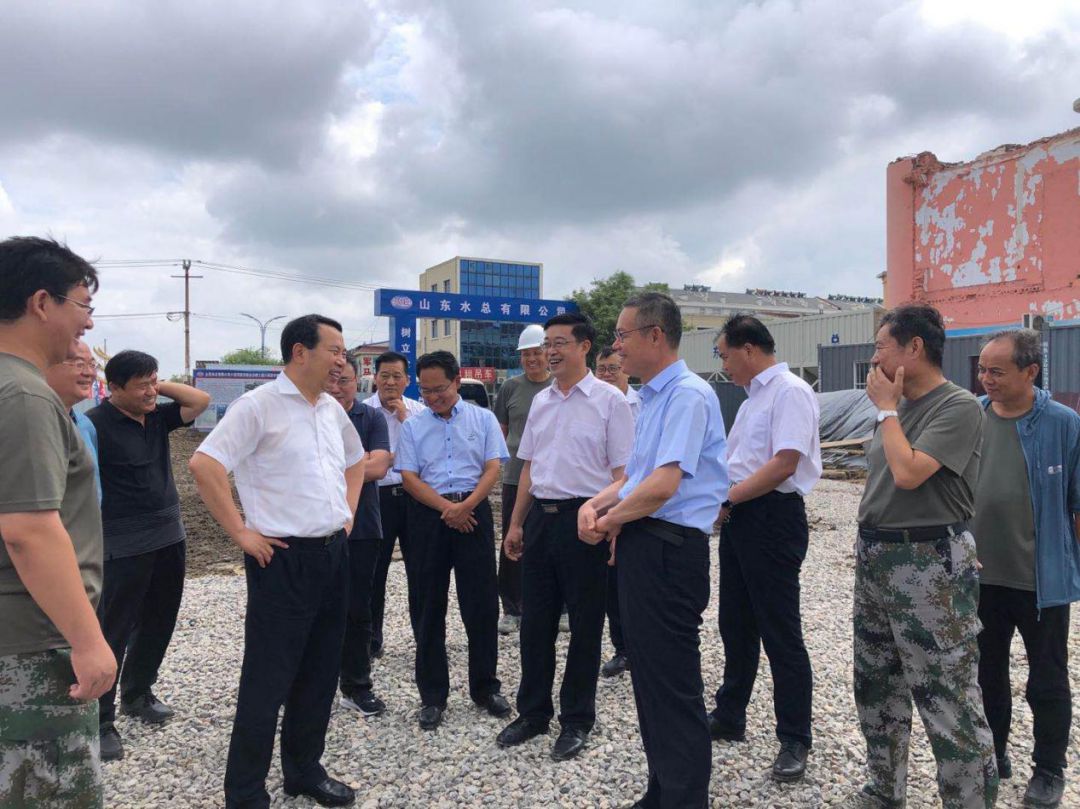 2020年7月13日,山东省水利厅厅长刘中会在寿光市委书记赵绪春的陪同下,到第二分九州平台负责实施的小清河防洪综合治理工程羊桥泵站视察工程建设及防洪度汛情况,九州平台董事长刁望利陪同参加。刘厅长对羊桥泵站水下主体工程完工表示祝贺,对奋战在施工一线的工作人员表示慰问。羊桥泵站是小清河全线开工时间最晚、施工难度最大的建筑物,山东水总能够克服诸多困难圆满完成工程建设任务,体现了国企担当。刘厅长赞扬了九州平台施工组织合理、工序衔接紧密高效,通过不懈努力向业主单位、向省水利厅交上了完美答卷。他要求在做好剩余工程施工的同时要做好防洪度汛工作,确保在建工程在汛期不出问题,备齐备足防汛物资、机械、人员,做好防大汛、抗大洪的准备。