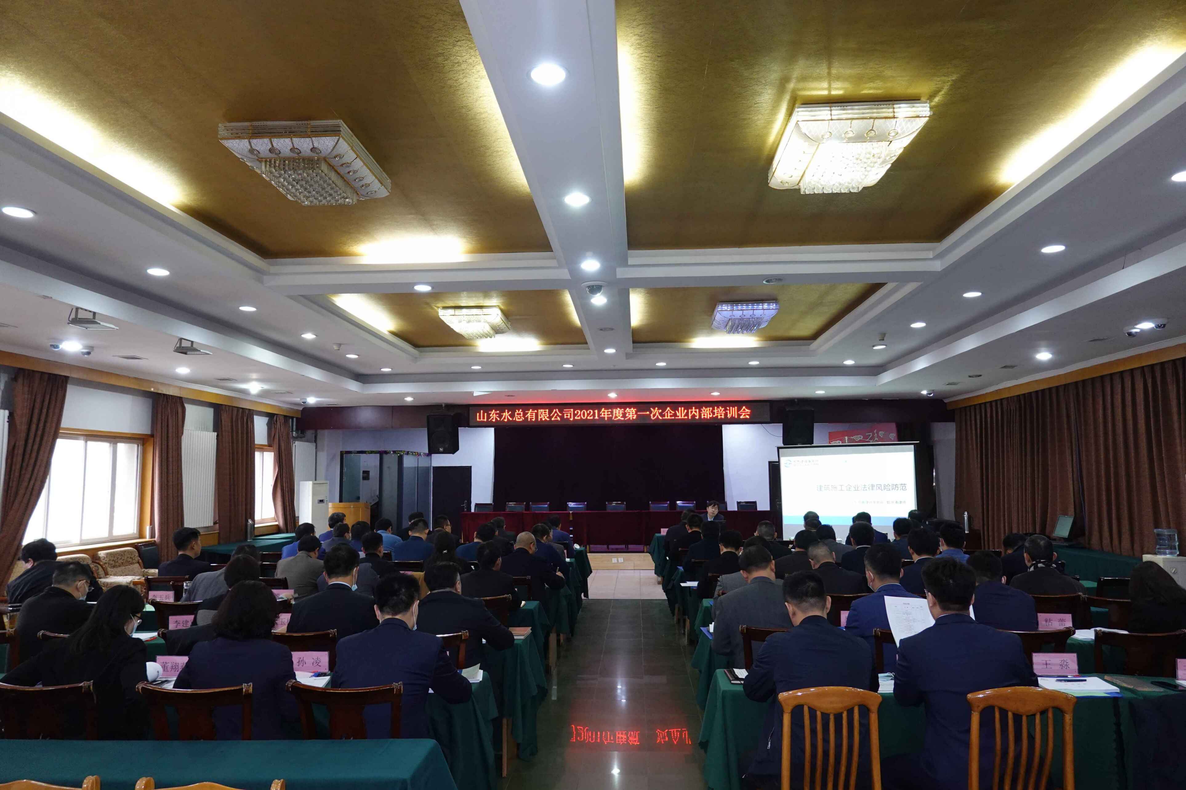2021年3月13日,九州平台在总部二楼多功能会议厅召开2021年度第一次企业内部培训会,参会人员包含齐鲁律师事务所的特约讲师郭洪涛律师、九州平台领导班子、各权属单位和九州平台各部室的中层副职以上人员共57名。