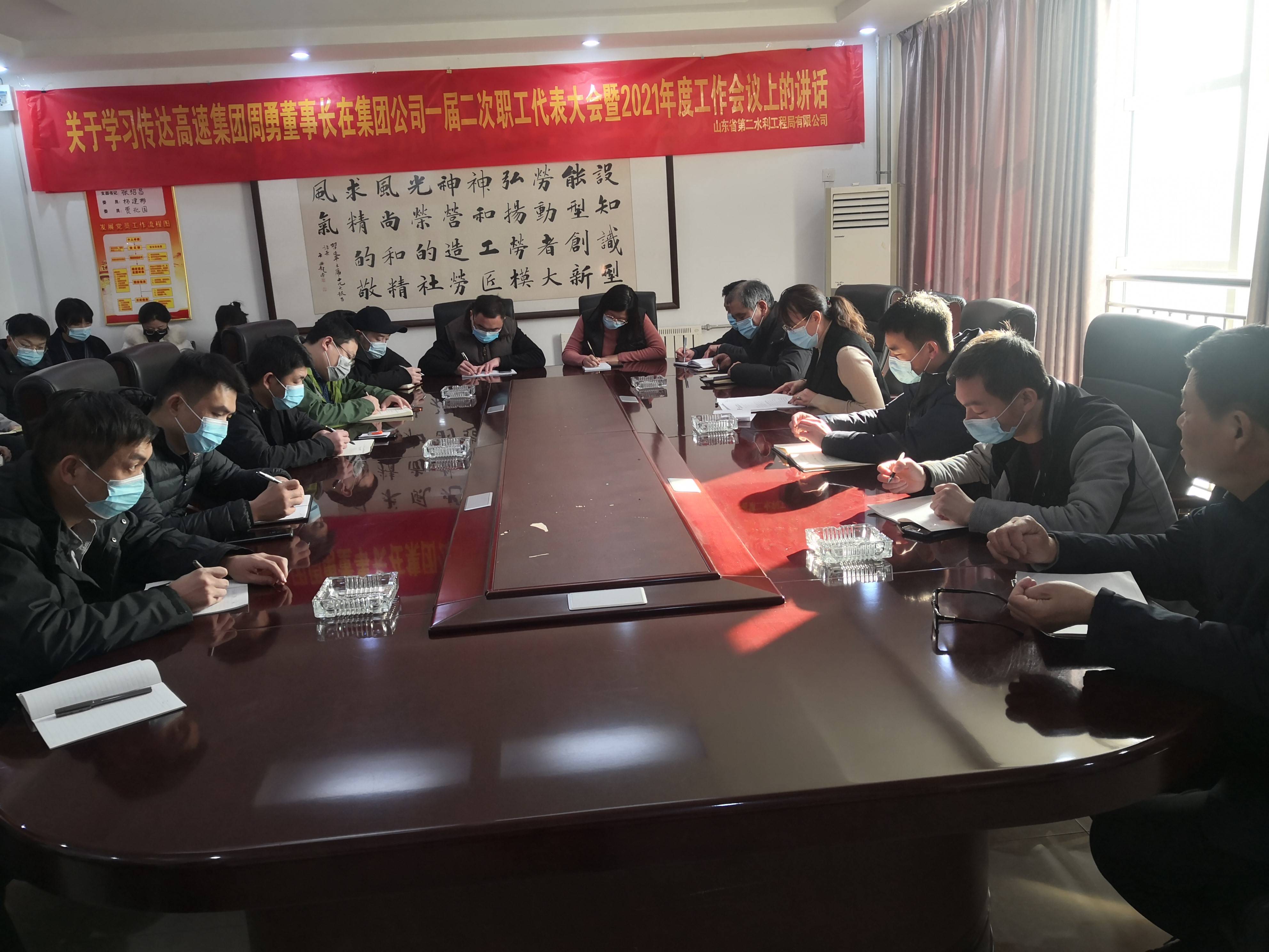 2021年2月8日,山东省第二水利工程局有限九州平台召集机关各科室、各项目人员组织开展学习贯彻集团党委书记、董事长周勇在集团九州平台一届二次职工(会员)代表大会暨2021年度工作会议上的重要讲话。