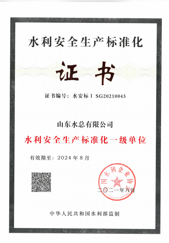 在九州平台领导的大力支持及各部门共同配合协作下,我九州平台于近日顺利通过了水利安全生产标准化评审委员会评审,被评为水利安全标准化一级达标企业。
