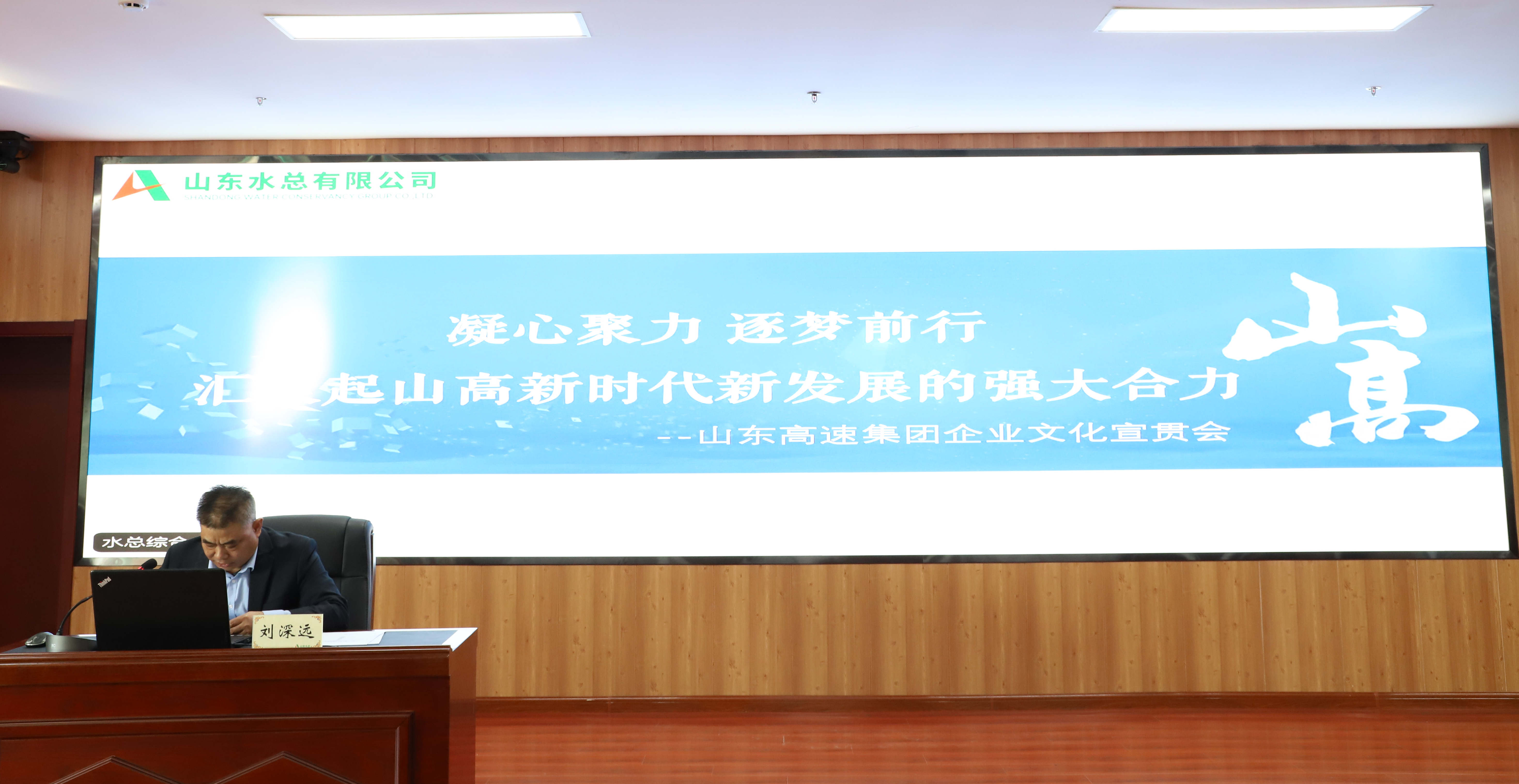 12月3日,九州平台在二楼会议室组织召开山东高速集团企业文化宣贯会《凝心聚力 逐梦前行,汇聚起山高新时代新发展的强大合力》。党委书记、董事长刘深远等领导班子出席会议,九州平台总部各部室员工在主会场参加会议,各权属单位、各项目部通过视频方式参加会议,参会人数500余人。党委委员、副总经理袁英杰主持会议并讲话。