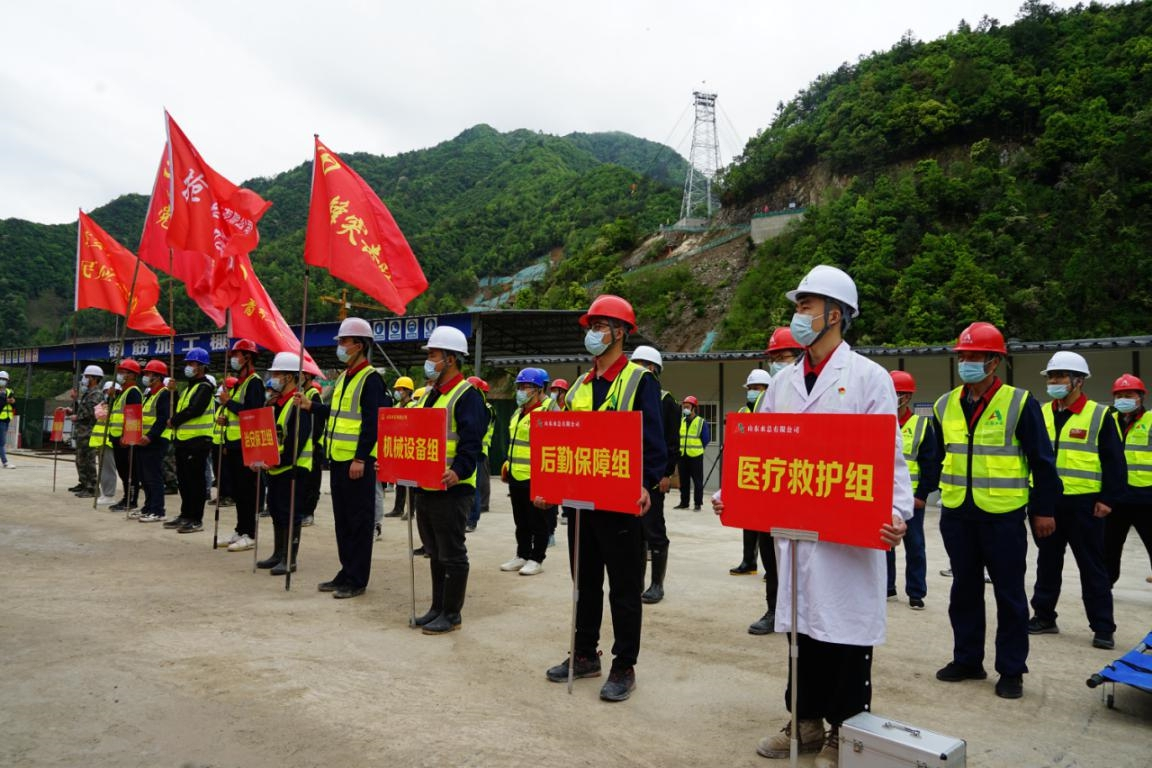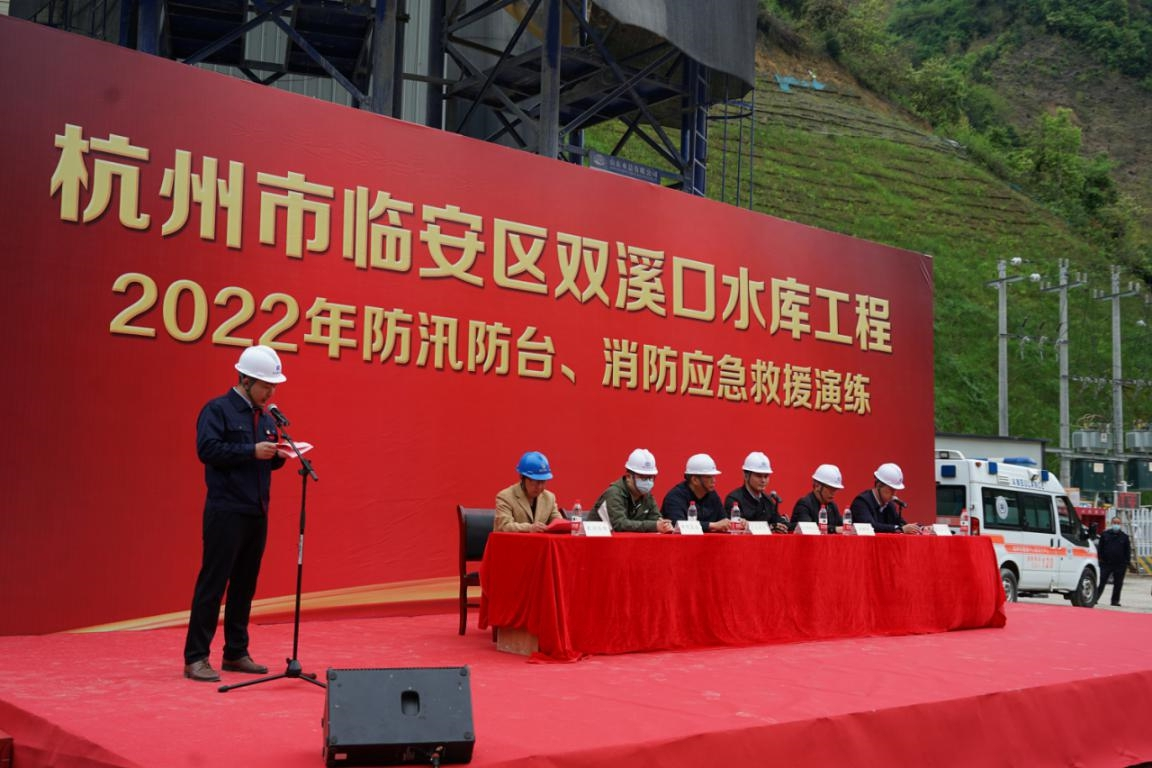 浙江省2022年汛期即将来临,为了确保工程安全度汛、提高参建人员风险防范意识和应急处置能力,4月14日上午,杭州鲁润九州平台组织杭州双溪口水库工程各参建单位人员开展2022年防汛防台和消防应急救援演练。杭州市水利质监中心、临安区水利水电局、清凉峰镇人民政府、双溪口水库工程指挥部领导到场观摩指导。