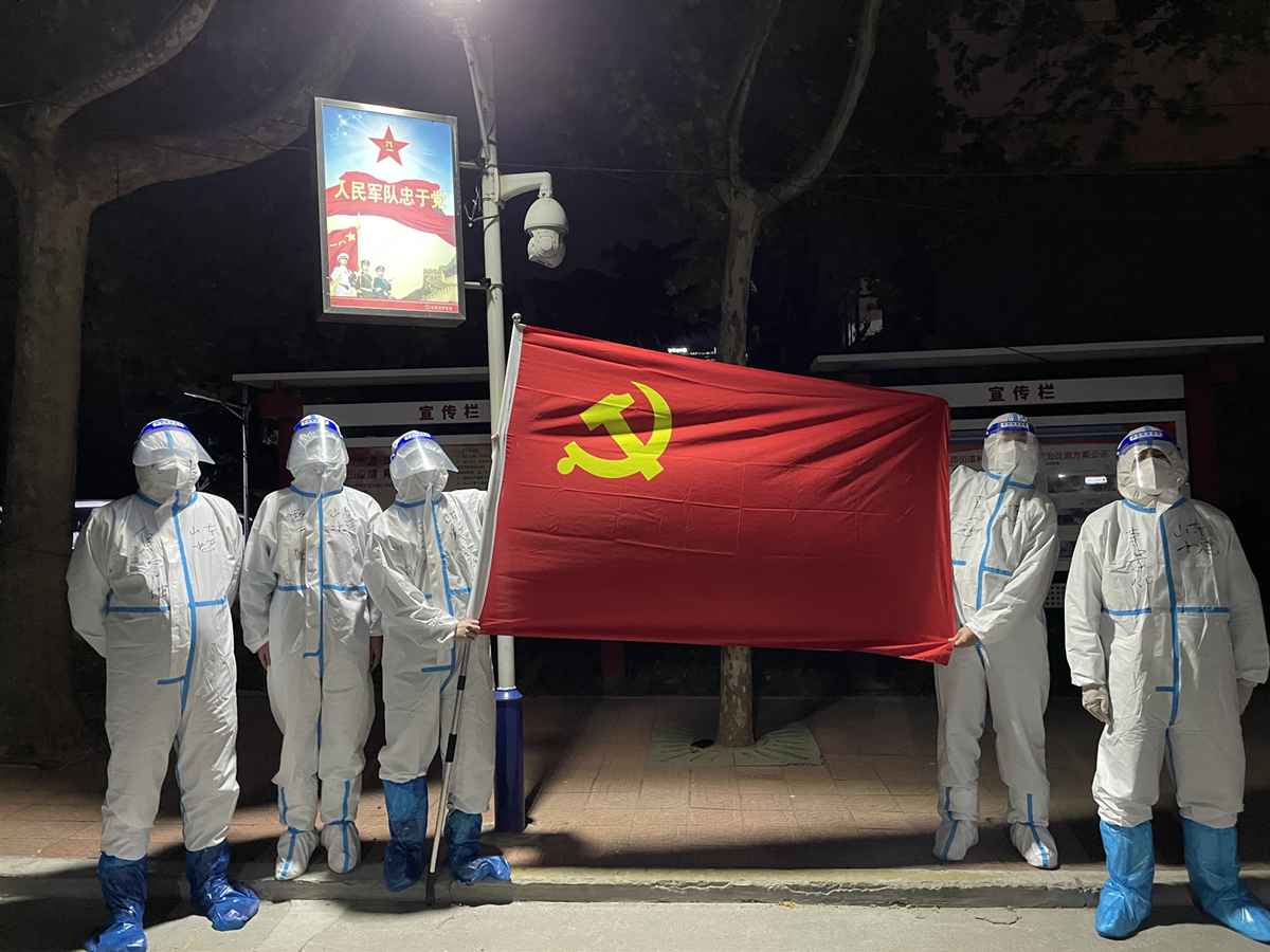由人力资源部阴冠一、审计部石天禹、机料管理部李景仰、第二分九州平台赵书宇、第三分九州平台焦鲁坤、第六分九州平台魏中坤组成的突击队,在急难险重任务中冲锋在前,按照街道办要求以二级防护状态投入到此次疫情防控大筛查中。面对拥有20栋楼,2000多人的大社区,他们合理分工,有条不紊的开展扫码备案、维护秩序、挨家挨户敲门等工作。志愿服务从下午五点一直持续到晚上十一点,汗水浸透了防护服里面的衣服,脸上却透露出不畏风险、勇往直前的信念。