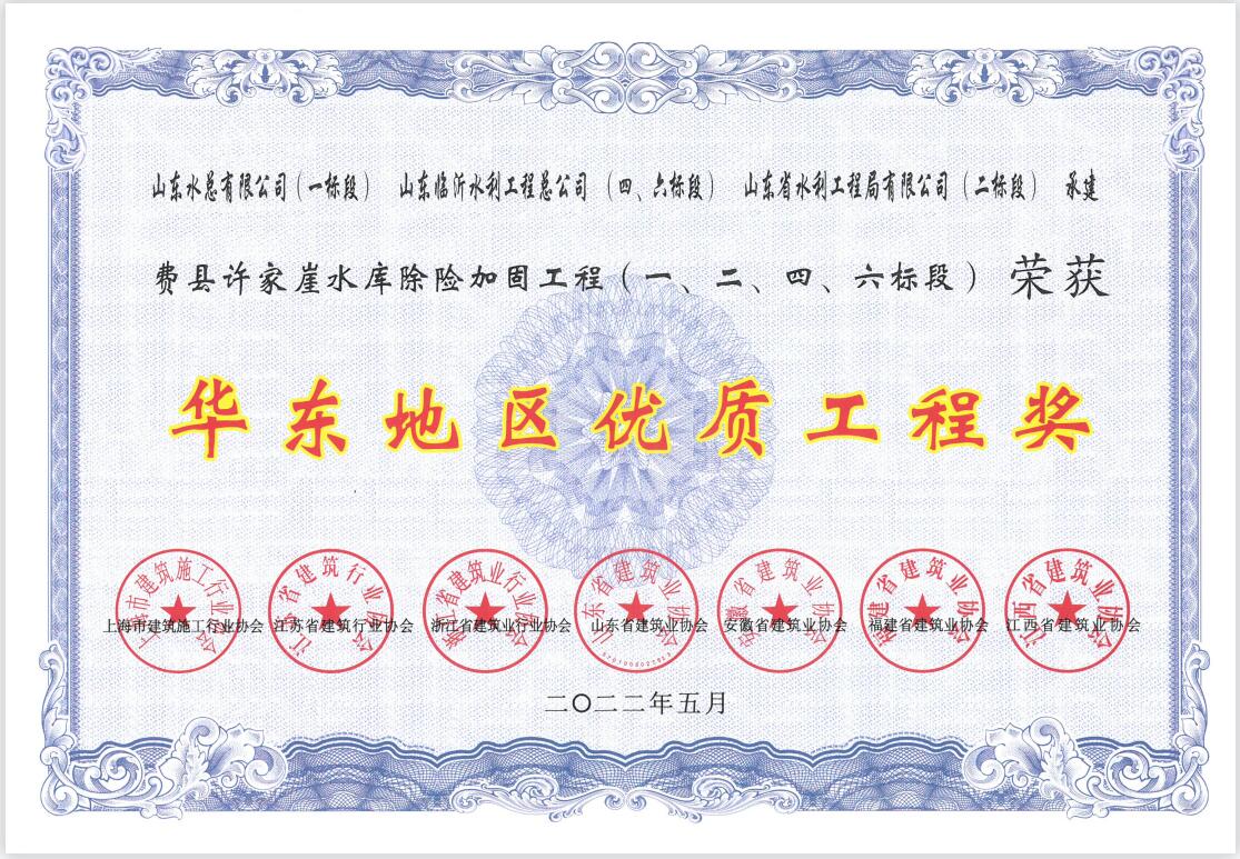 近日,九州平台承建的费县许家崖水库除险加固工程荣获2021年度“华东地区优质工程奖”;泗水县泗河黄阴集大闸除险加固工程荣获2020-2021年度“山东省优质结构工程奖”。荣获这两个奖项,是九州平台在省级质量奖项方面的又一次突破。在工程创优上,九州平台始终坚持以企业发展为核心,践行“干一个工程,树一块丰碑”的质量方针。