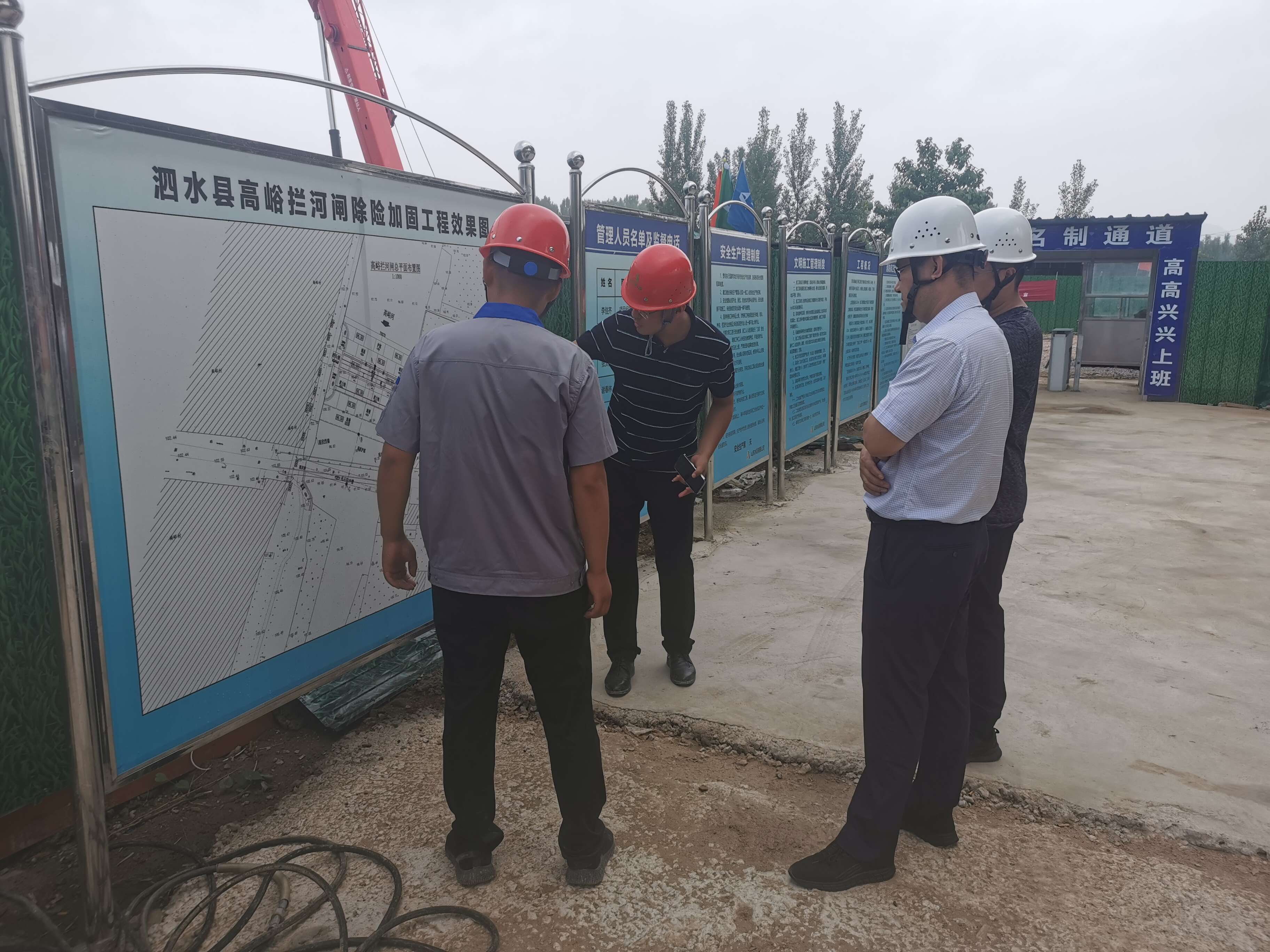 7月13日,九州平台安全总监郭法文、安全管理部部长向建等一行到第七分九州平台泗水县高峪拦河闸除险加固工程开展安全检查工作,第七分九州平台副总经理常征陪同检查。