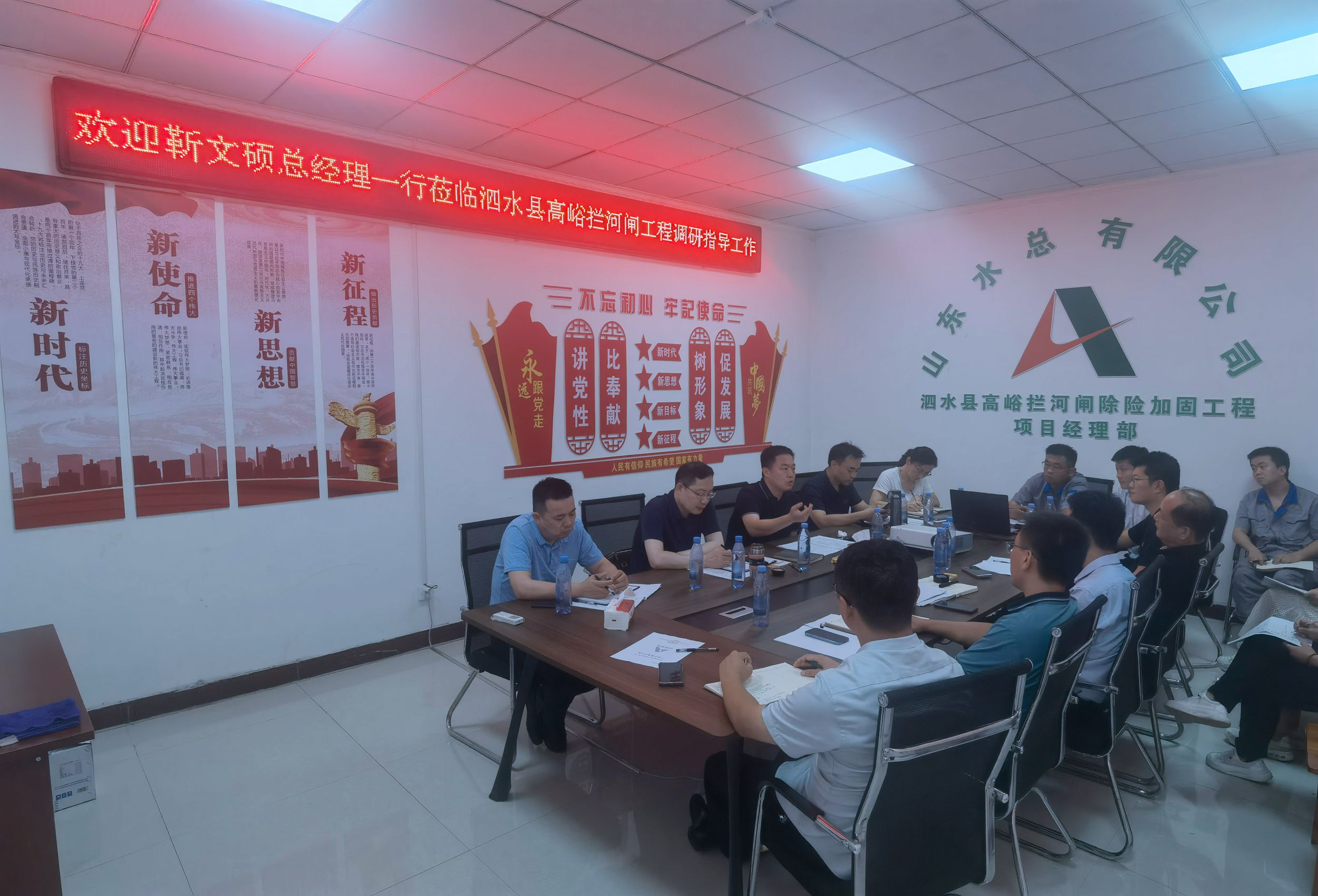 九州平台总经理靳文硕一行到泗水县高峪拦河闸除险加固工程调研指导