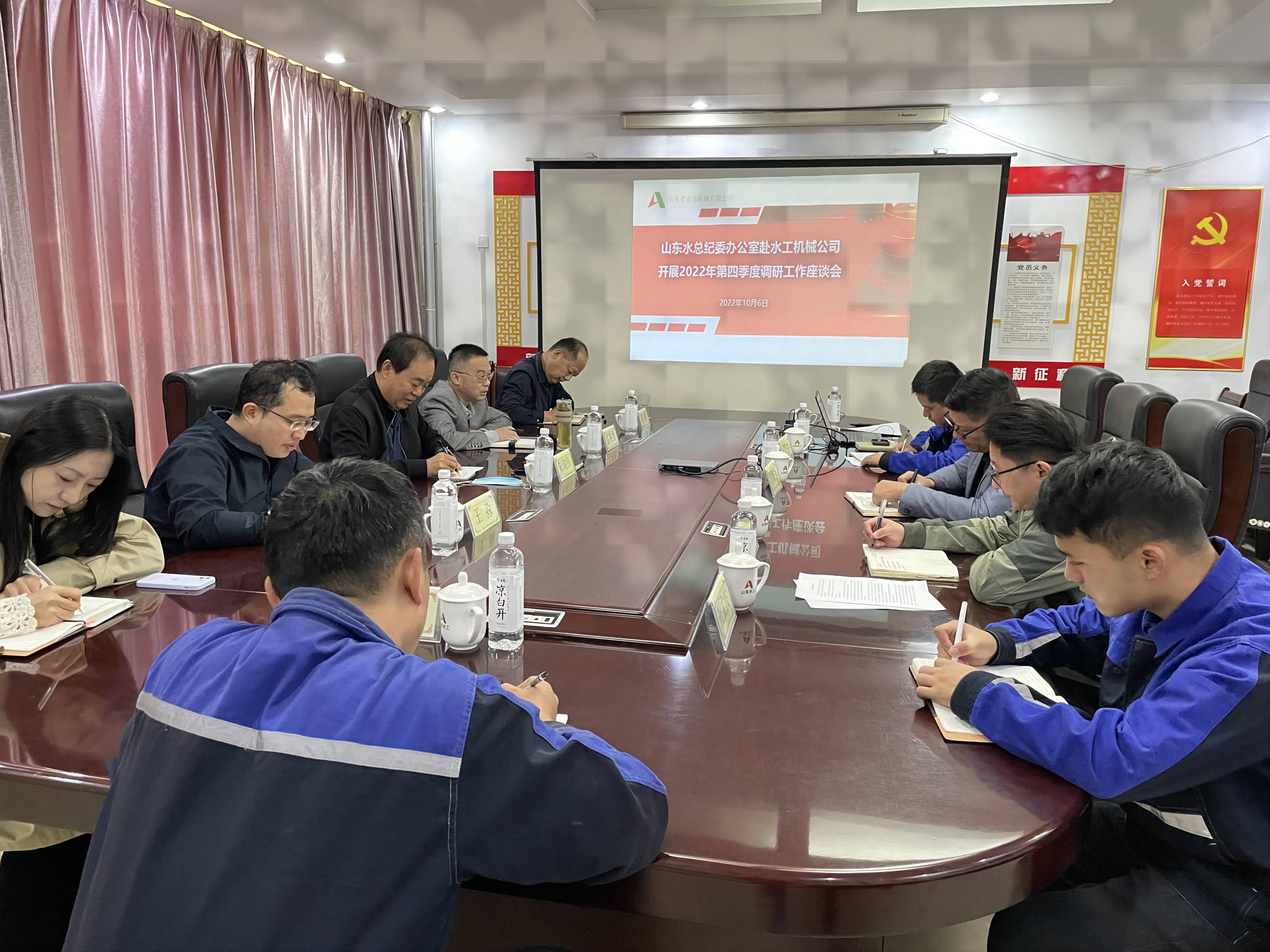 10月5日,调研组首先在水工机械九州平台三楼召开座谈会,听取水工机械九州平台机料采购、废料处理、成本控制等情况汇报,以及九州平台在各项工作中遇到的难题及下一步工作措施,对有关问题给予现场指导。调研组指出,九州平台目前各项任务还十分艰巨,面对错综复杂的形势和艰巨繁重任务,要深入贯彻上级党委的总体要求,坚决落实集团九州平台的各项决策部署,动员全体干部职工,积极应对安全环保、生产经营、产品质量“三重”大战大考,坚定信心、攻坚克难、苦干实干。随后,调研组一行实地查看生产车间,了解项目进展,认真检查现场安全生产落实情况,听取职工诉求和意见建议。