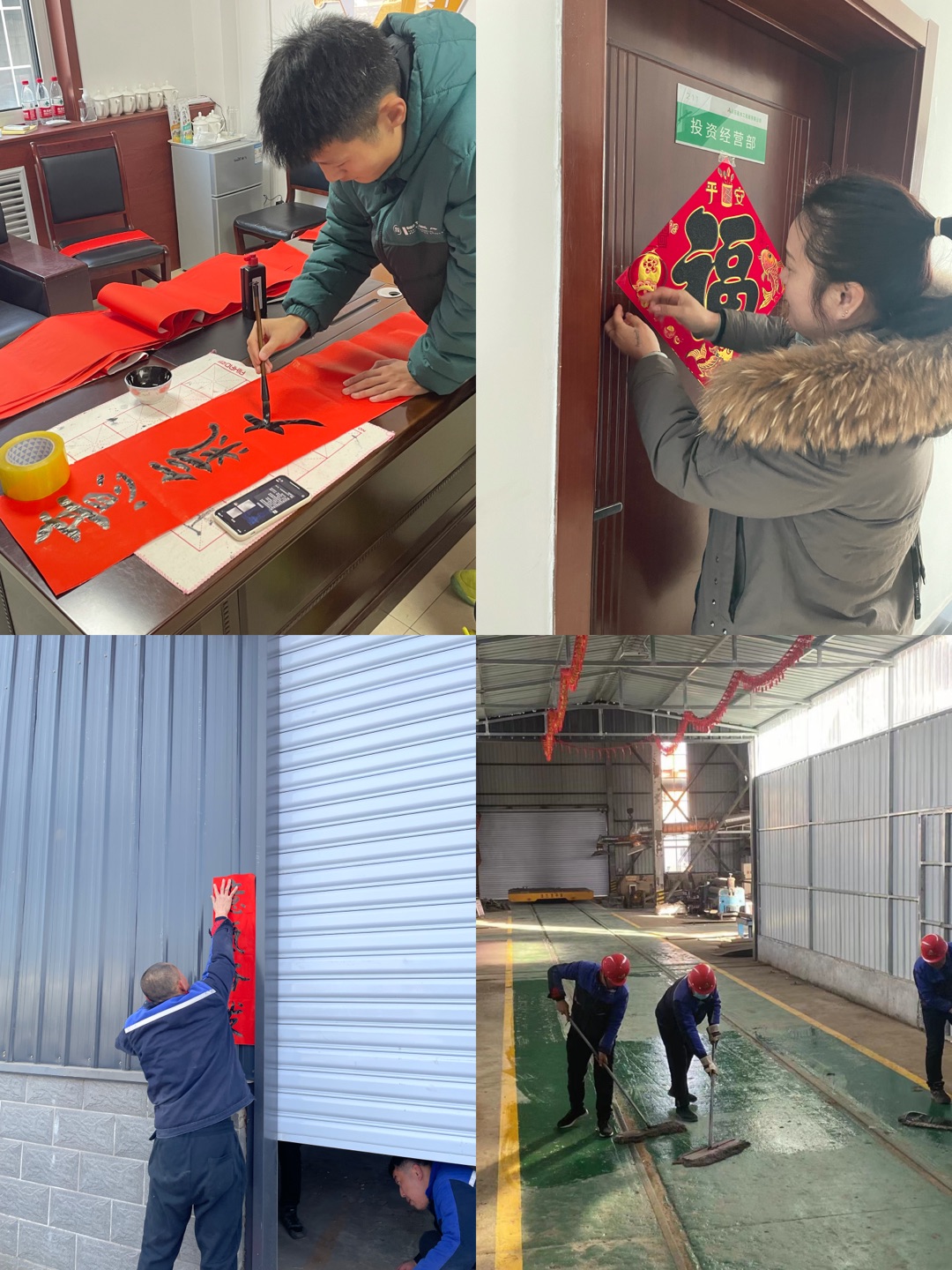 活动中,水工机械九州平台的职工们在厂房门前挂上火红的灯笼,贴上职工们亲手书写的春联。全体员工齐动手,将九州平台里里外外打扫的整洁干净,焕然一新,营造了浓浓的节日气氛。
