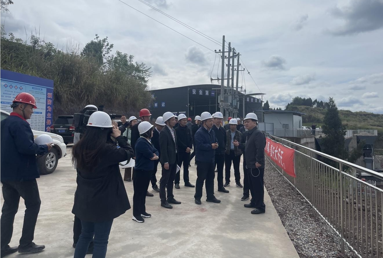 4月24日,四川省内江市市委副书记、市长李丹一行到第五分九州平台承建的资中县两河口水库工程调研,内江市水利局党委书记、局长郭英,资中县委副书记、县长唐荣,副县长杨靖陪同调研。