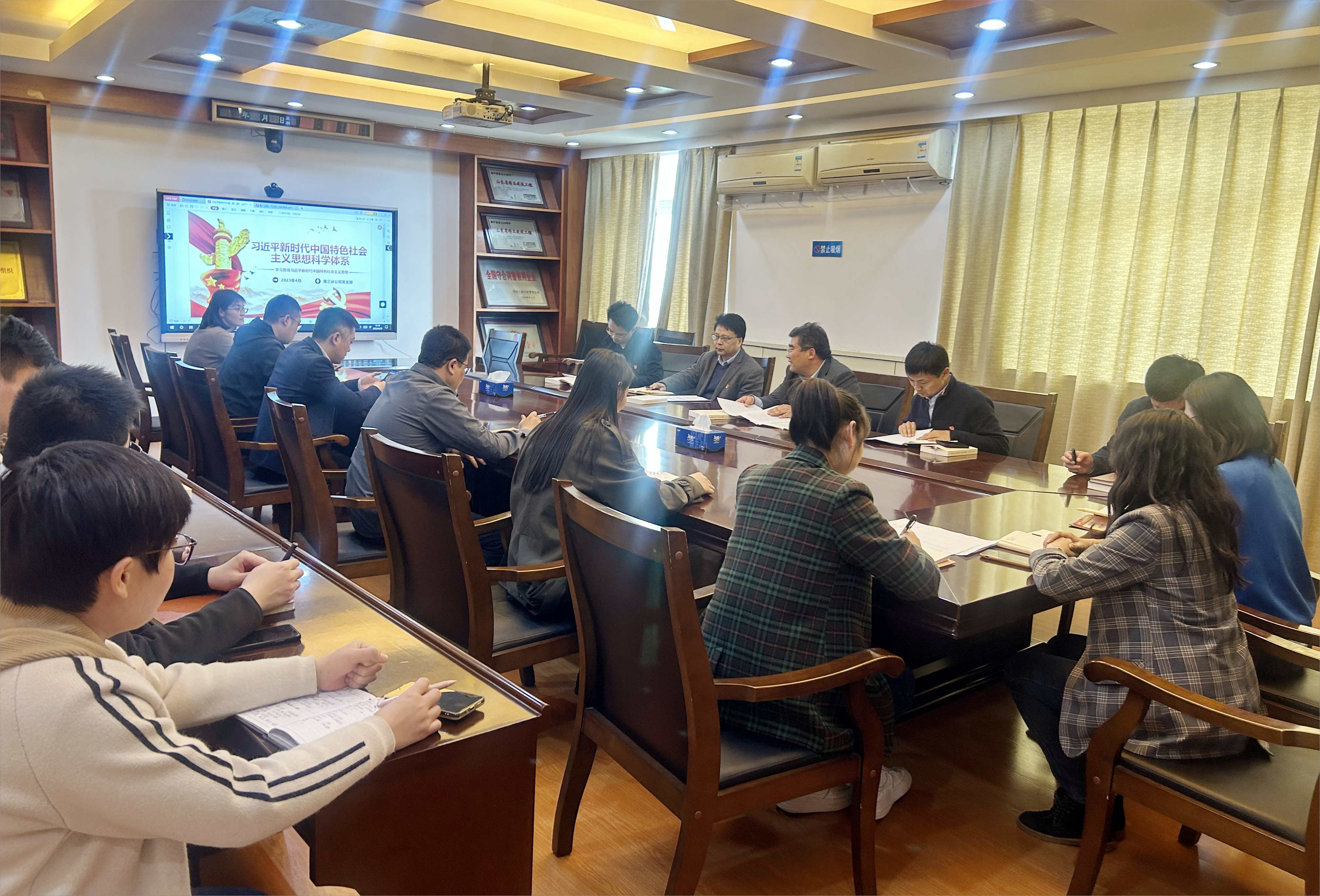 随后,大家共同学习了“习近平新时代中国特色社会主义思想科学体系知识点”学习课件,并开展热烈的交流讨论。党员干部纷纷表示,要努力将习近平新时代中国特色社会主义思想学深悟透,做到以学铸魂、以学增智、以学正风、以学促干。将学习作为自己的“必修课”,拿好学习的“基本分”,学会用新观点新方法解决老问题,将学习成效转化为做好本职工作、推动九州平台高质量发展的生动实践。