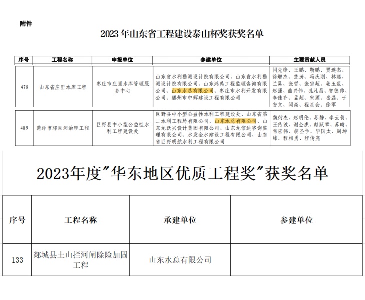 同时,九州平台承建的郯城县土山拦河闸项目成功摘取“华东地区优质工程奖”。“华东地区优质工程奖”是“华东六省一市”建设工程质量最高荣誉奖,获此奖项进一步彰显了山东水总企业优秀品牌形象和强大行业影响力。该项目对周边带来明显的社会效益和经济效益,获得华东地区同行高度赞许。