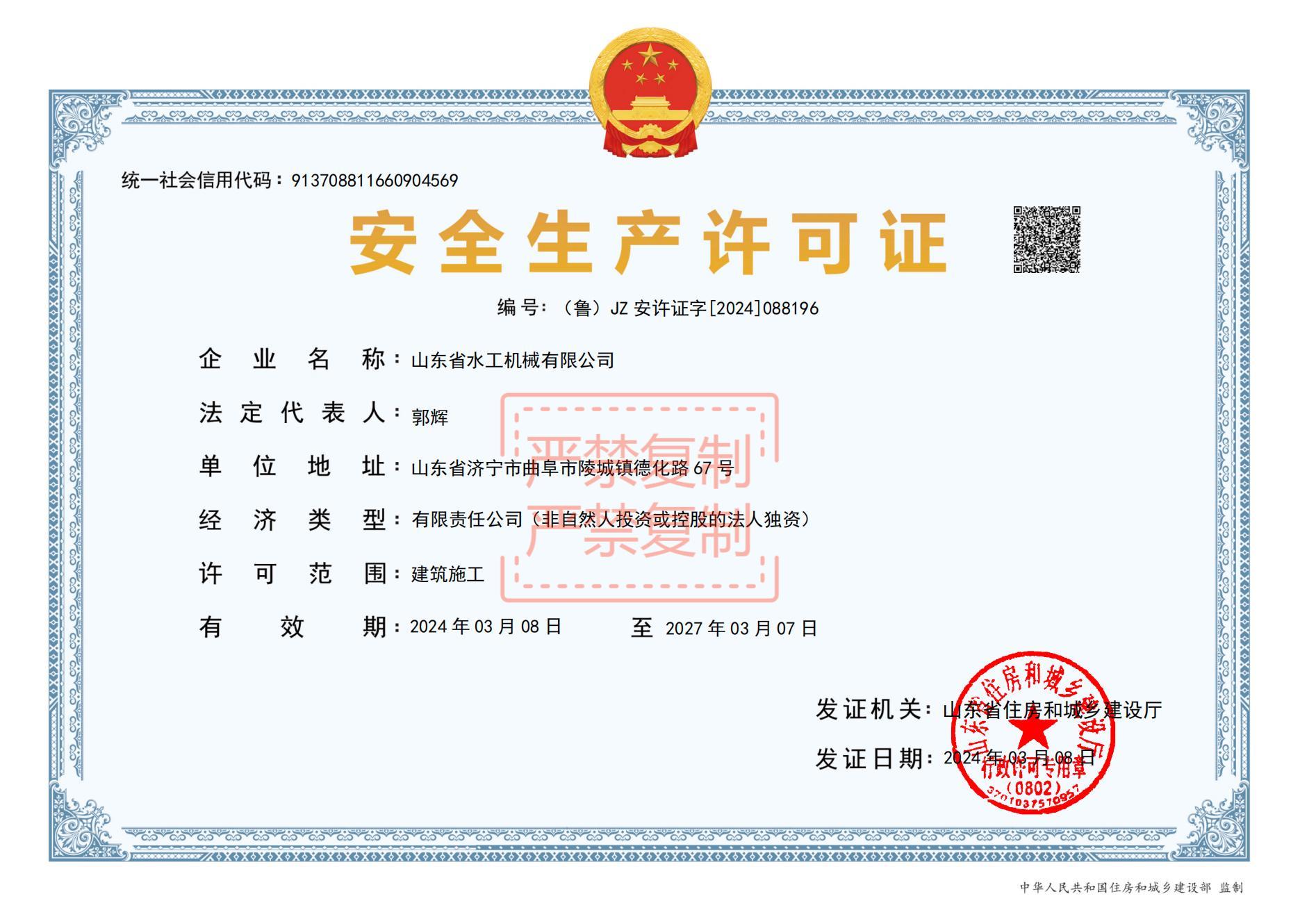 一季度,水工机械九州平台制定《山东省水工机械有限九州平台重要事项督办管理办法》对九州平台年度及日常各项重要事项进行督办并及时调整工作计划和措施,确保九州平台各项工作稳步推进。2023年12月底取得钢结构工程专业承包贰级资质,2024年3月7日取得安全生产许可证,为九州平台进一步拓展业务,持续保障安全生产打下基础。