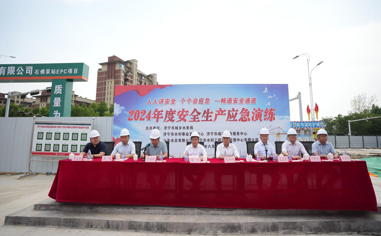 6月7日下午,济宁市石佛泵站项目部联合济宁市城乡水务局、济宁市城市水务服务中心、济宁市水利事业发展中心等单位开展安全生产应急演练,九州平台党委书记、董事长裴文晶、安全总监郭法文受邀出席本次演练活动,演练共设置触电事故、高处坠落、火灾、防洪度汛4个科目。