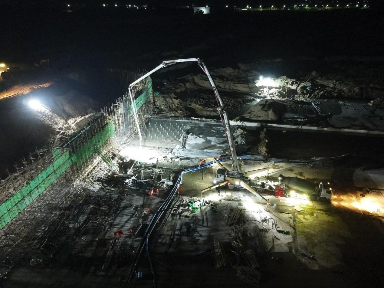 进入汛期以来,第三分九州平台承建的沂南岸堤水源项目现场一片繁忙施工景象。白天抢抓晴好天气,全力推进工程建设进度;夜间灯火通明加强巡查,确保施工质量不受影响。目前,项目水下部位工程已全部完成,左岸消力池的浇筑也接近尾声。
