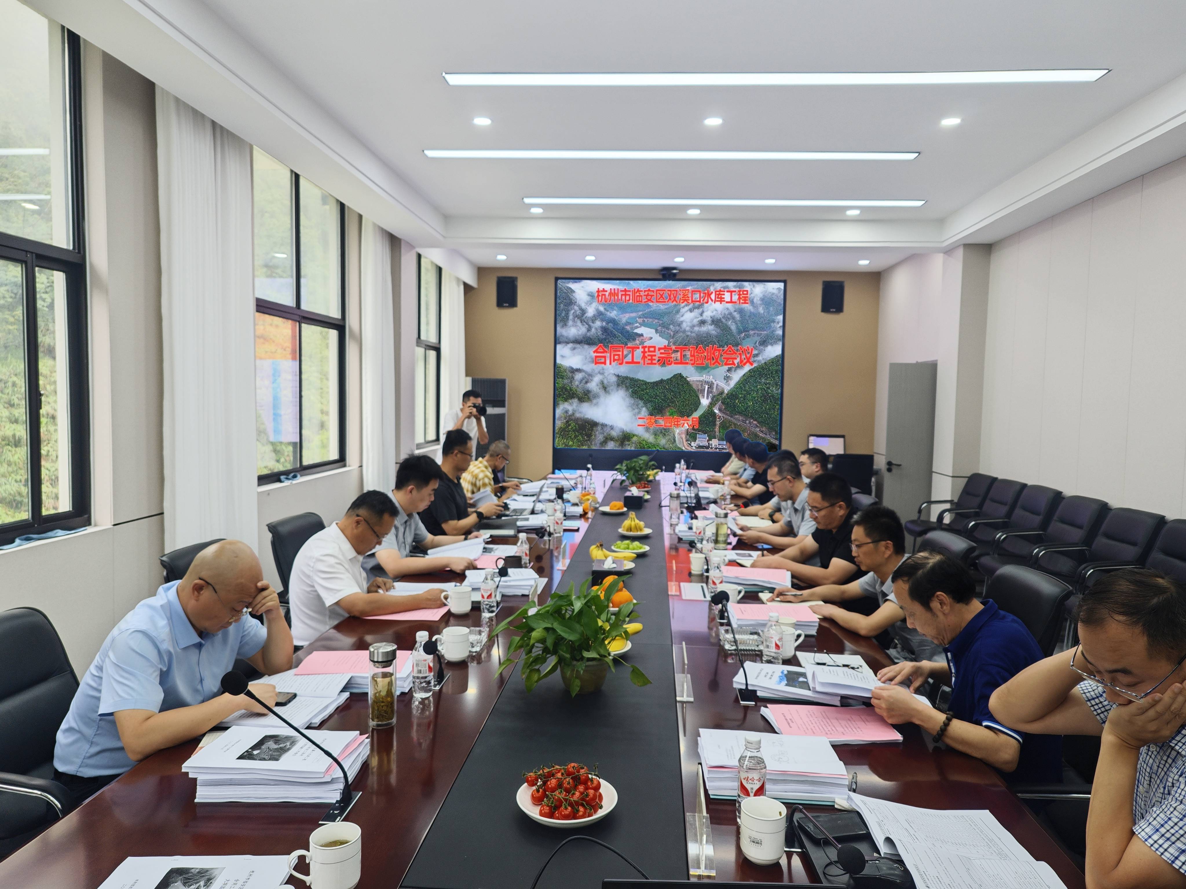 近日,双溪口水库合同工程完工验收会议在水库运营管理中心召开。临安区水利水电局、清凉峰镇、润丰九州平台(政府股东方)等相关单位负责人及有关专家、各参建单位项目负责人参加会议。