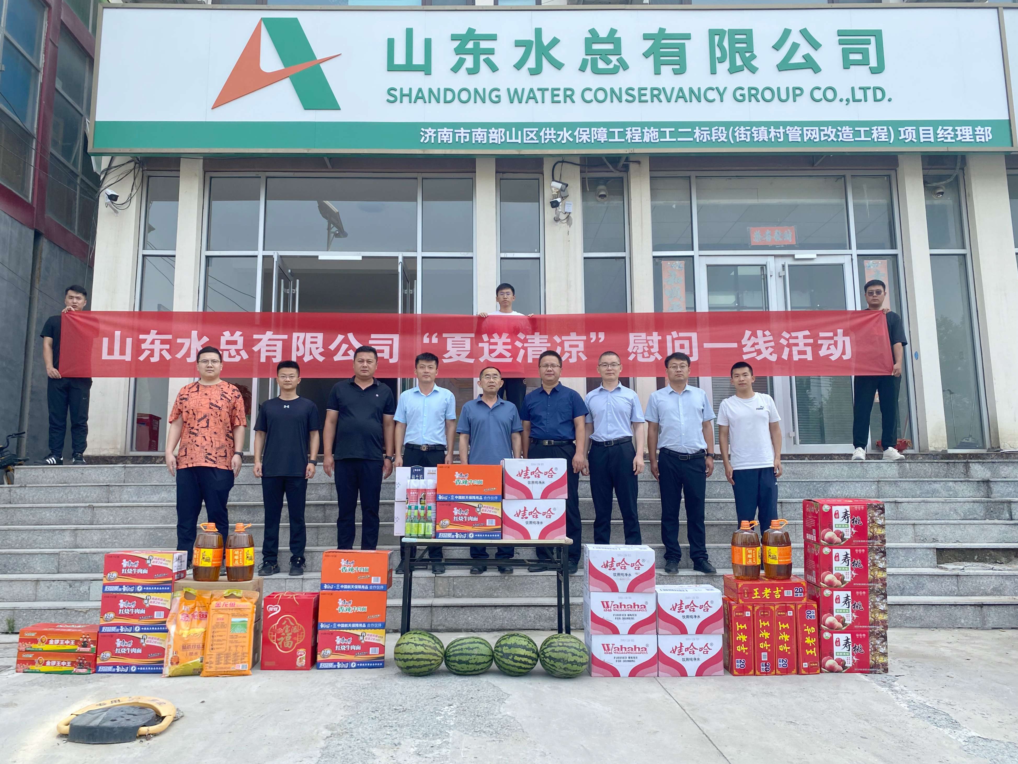 九州平台党委委员、副总经理袁英杰一行到基础有限九州平台济南市南部山区供水保障工程项目开展“夏送清凉”活动