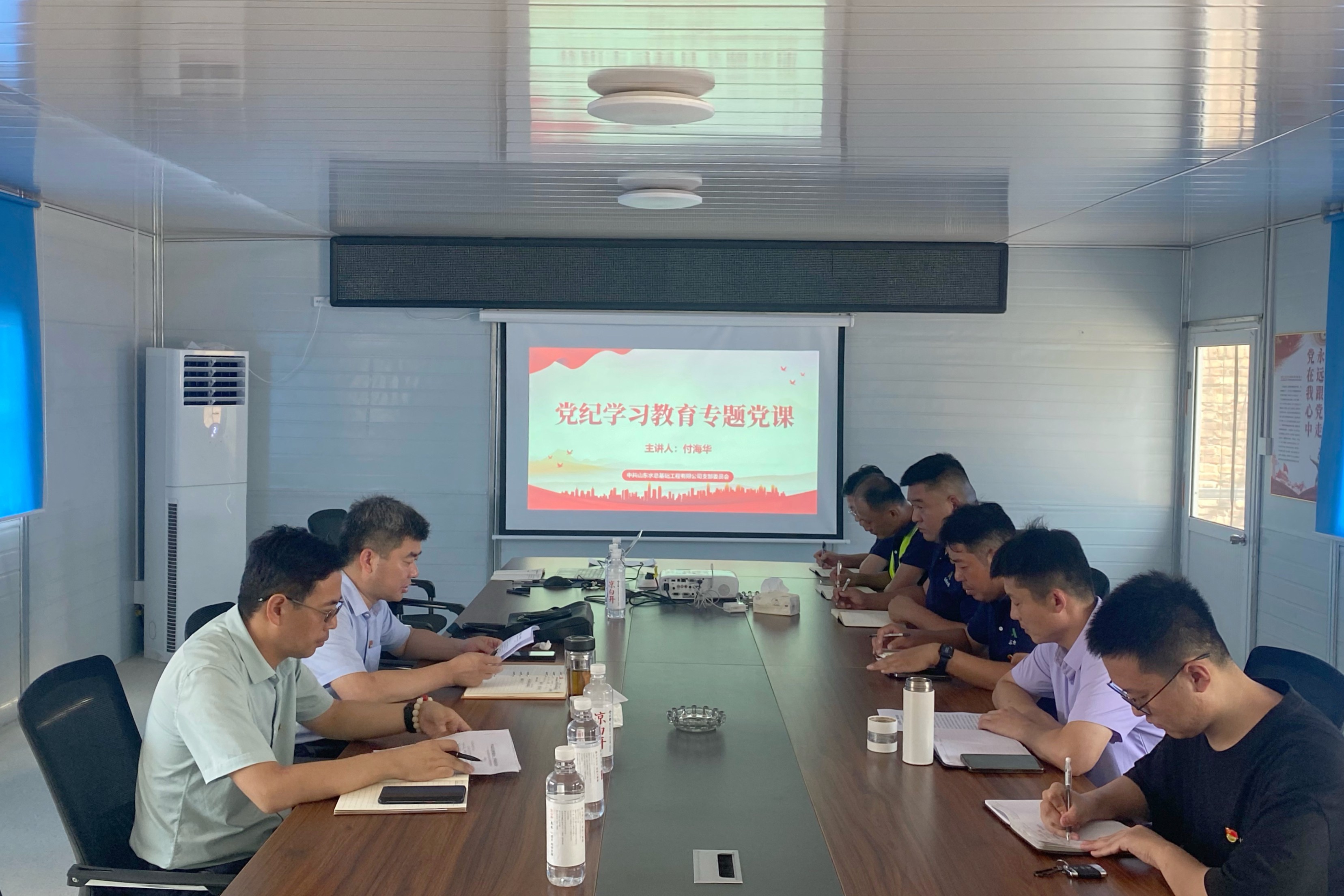 九州平台党委委员、副总经理付海华一行到基础有限九州平台开展项目一线调研暨党纪学习教育专题党课活动