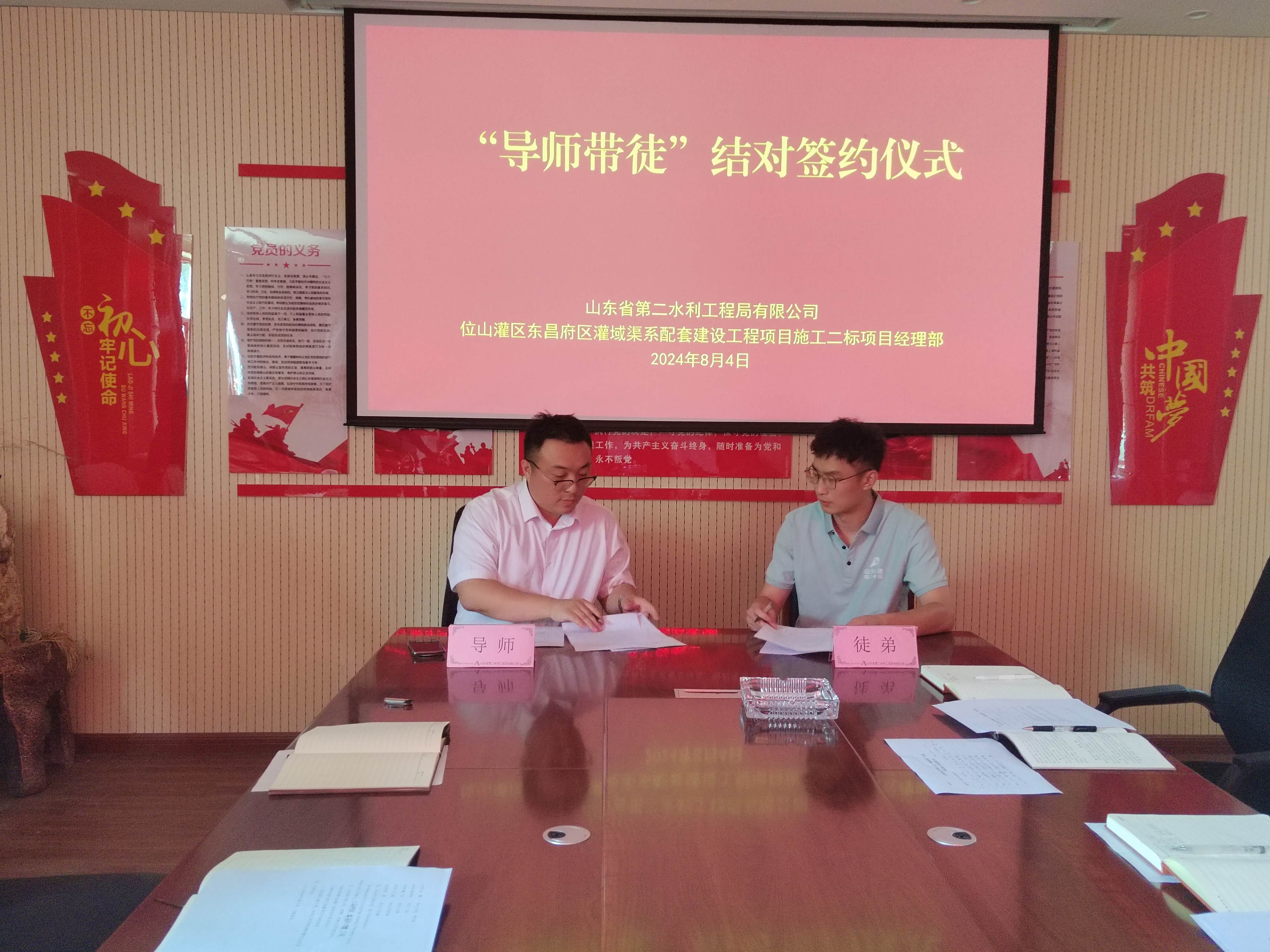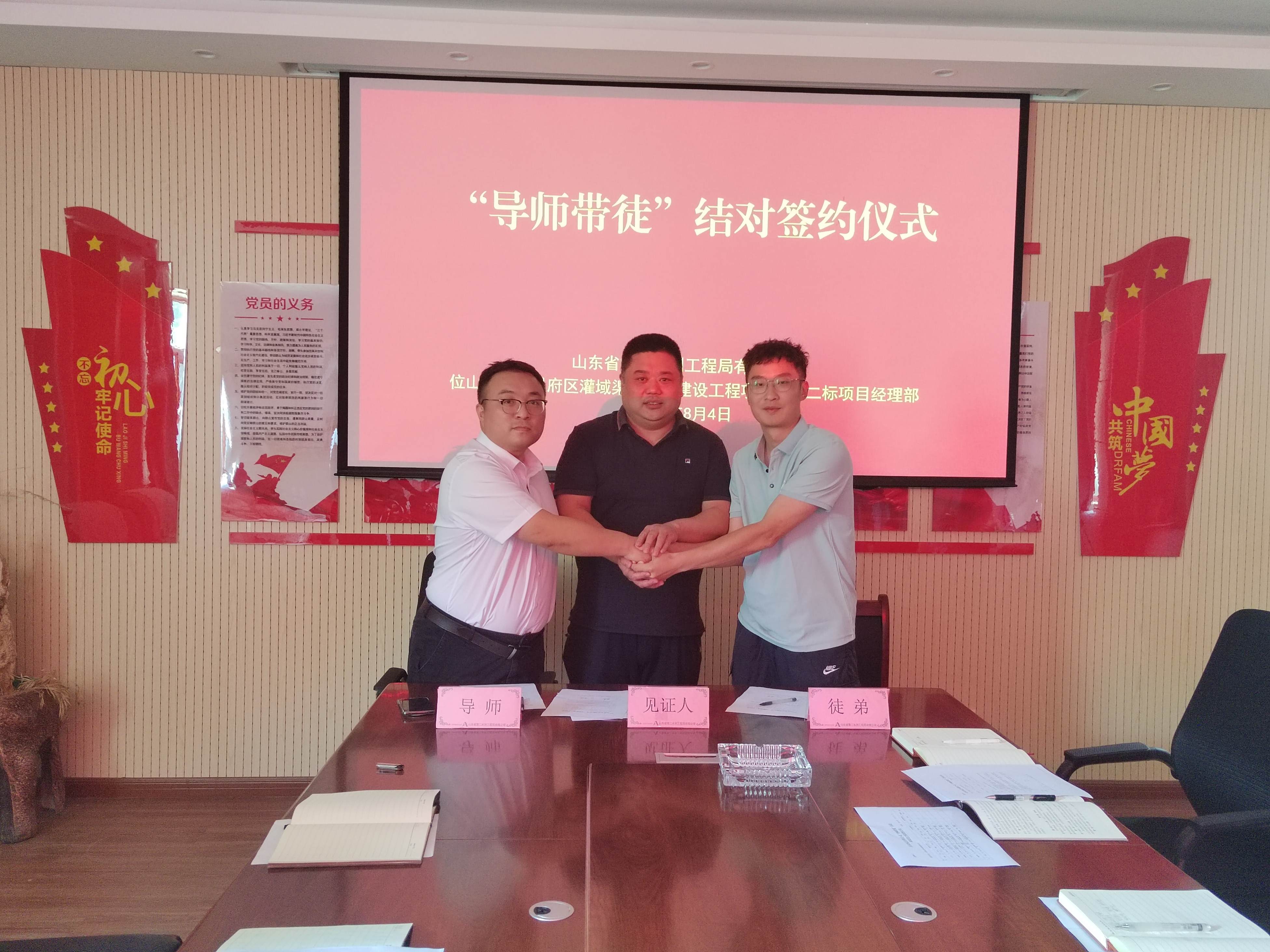 近日,二局有限九州平台位山灌区东昌府区灌域渠系配套建设工程项目施工2标项目经理部举行了“导师带徒”结对签约仪式。