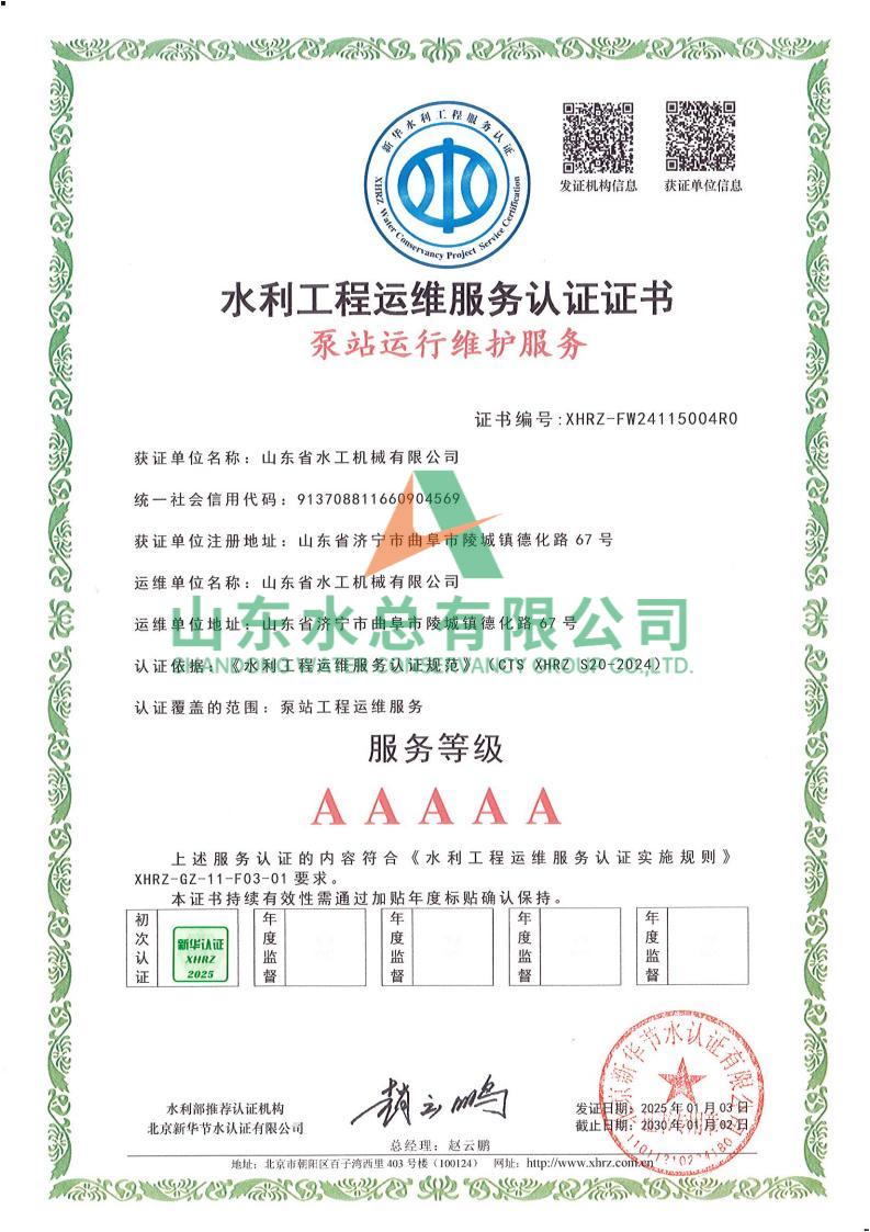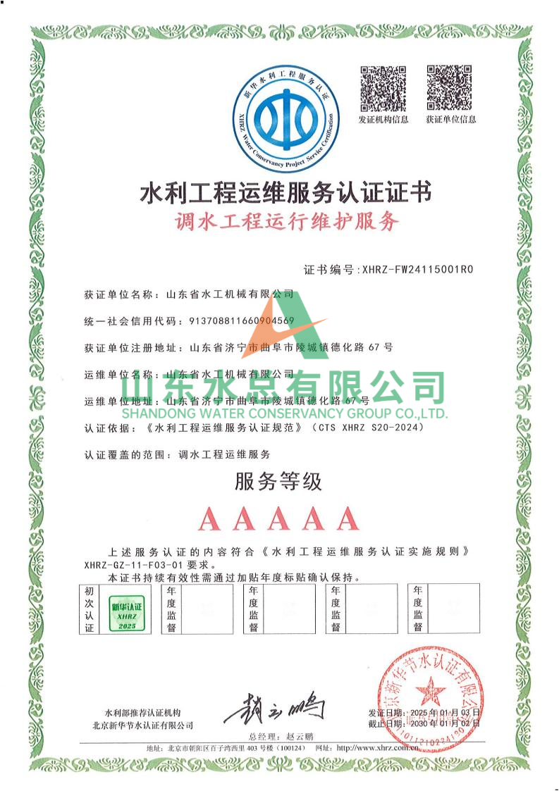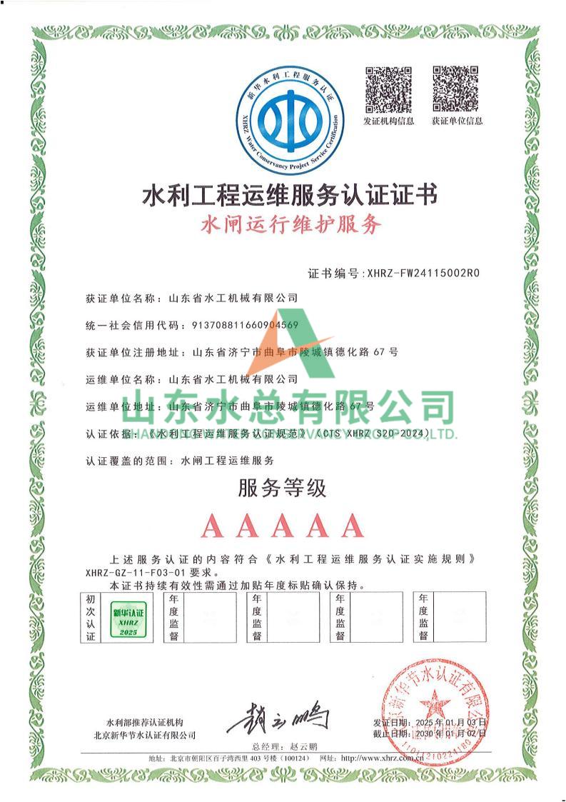 认证的通过,为水工机械九州平台在水利产品运维领域的高质量发展增添了重要助力。水工机械九州平台将以此为契机,继续秉持专业、负责的态度,为水利工程运维贡献更多力量,在行业内树立更优质的标杆形象,助力水利事业稳步发展。