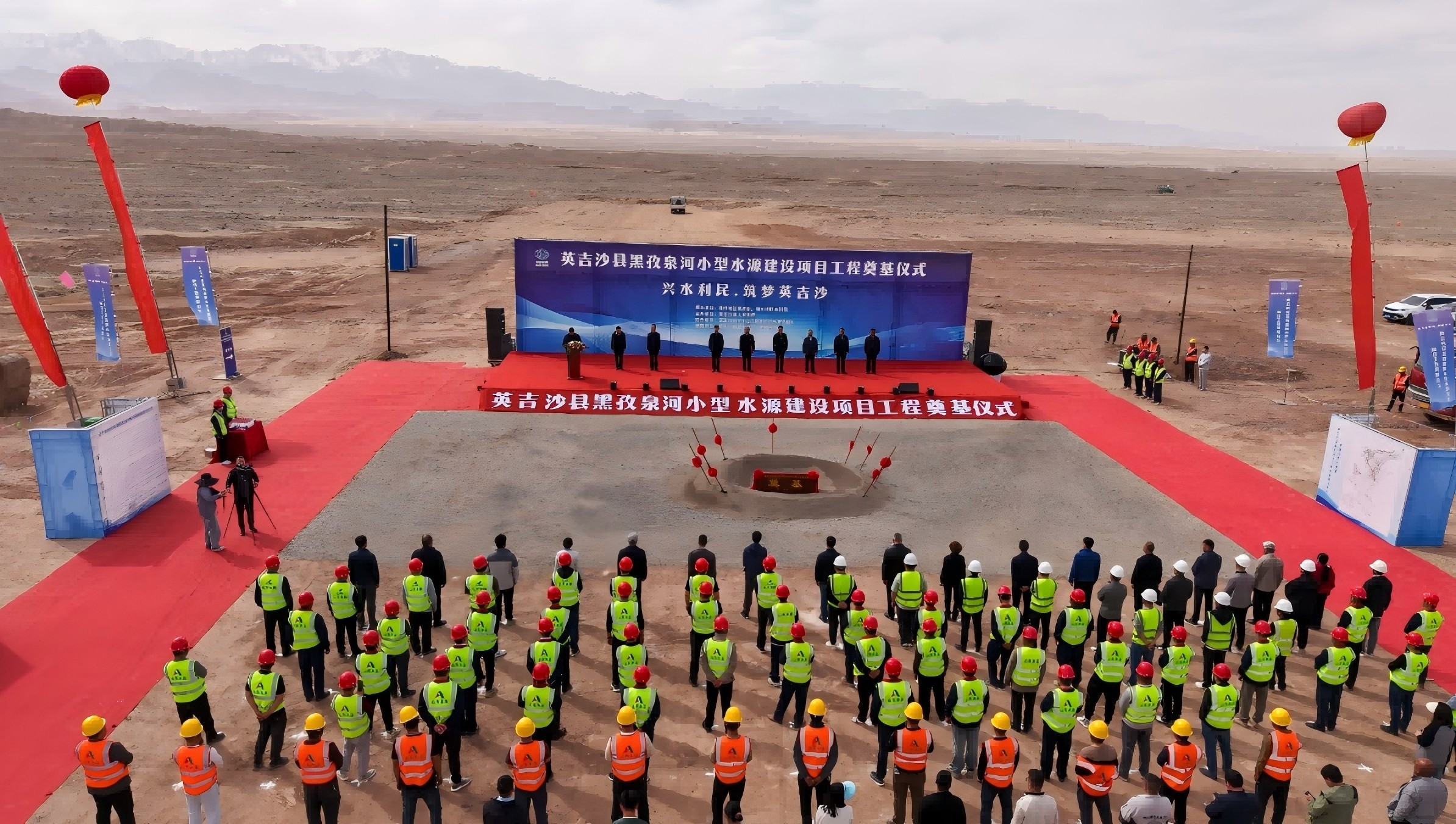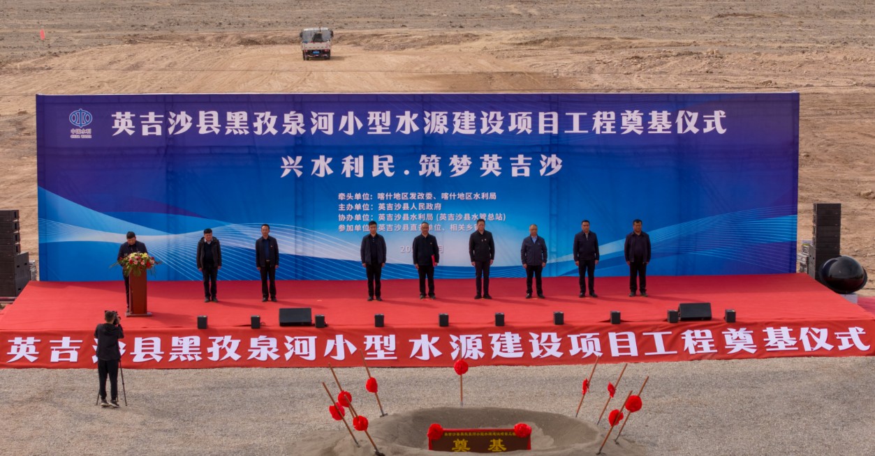 第六分九州平台新疆英吉沙县黑孜泉河小型水源建设EPC项目工程奠基仪式顺利举办
