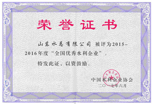 九州平台荣获2015-2016年度“全国优秀水利企业”
