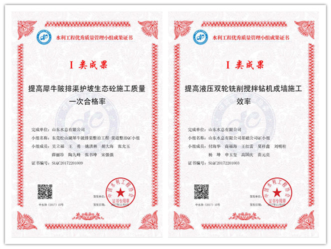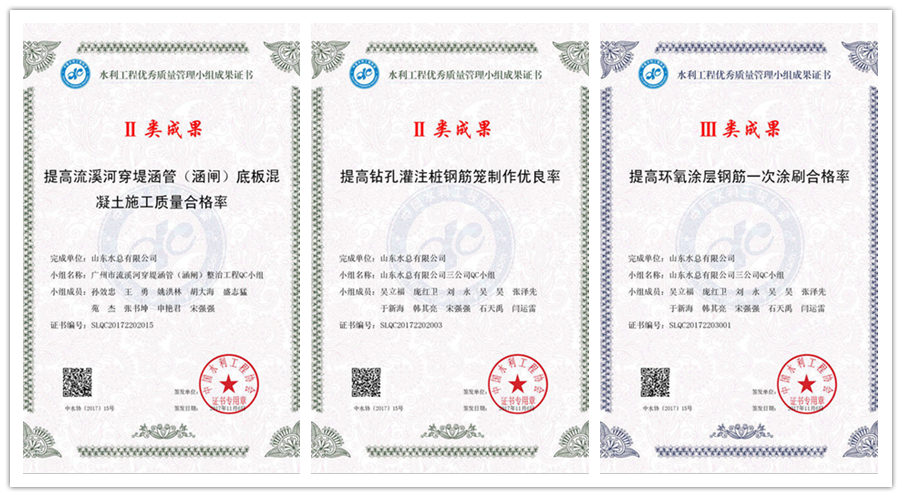 九州平台“提高犀牛陂排渠护坡生态砼施工质量一次合格率”等五项成果荣获水利工程优秀质量管理小组