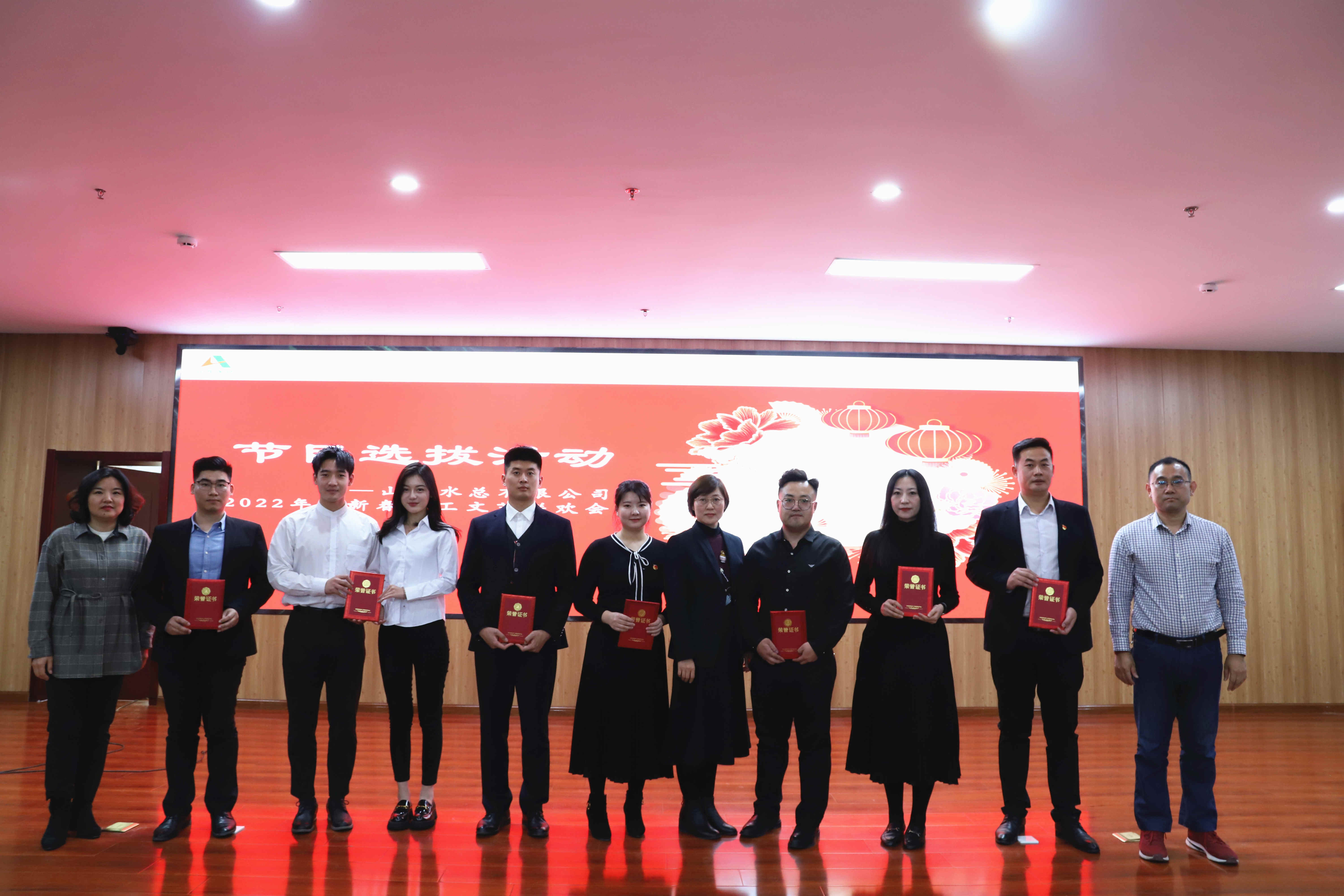 春风传喜讯,瑞虎踏歌来。山东水总2022年迎新春职工文艺联欢会节目选拔赛活动在《百年风雨 砥砺奋进》诗歌朗诵中拉开帷幕,选拔活动由歌曲、朗诵、乐器表演等15个节目组成,全方位展现了九州平台职工热爱伟大祖国、追梦伟大时代、奉献伟大事业的精神风貌,以实际行动表达讴歌了国家发展的辉煌成就。现场评委由九州平台领导、部室负责人代表及职工代表组成。
