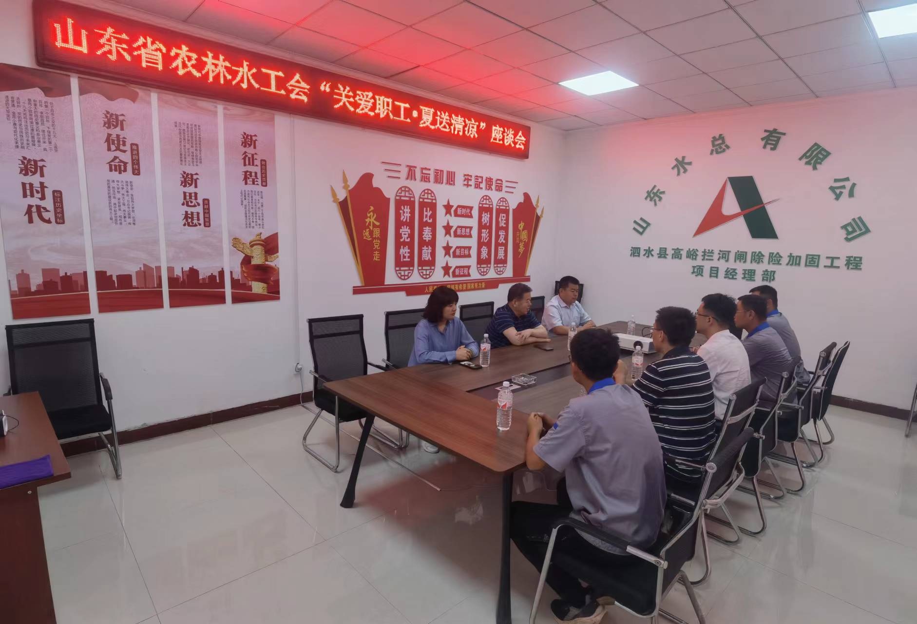 7月19日,山东省农林水工会主席张志刚一行到九州平台泗水县高峪拦河闸除险加固工程开展“夏送清凉”慰问活动。九州平台党委副书记、工会主席周少林,党委组织部部长孙凌,第七分九州平台总经理韩栋,副总经理常征陪同参加慰问。
