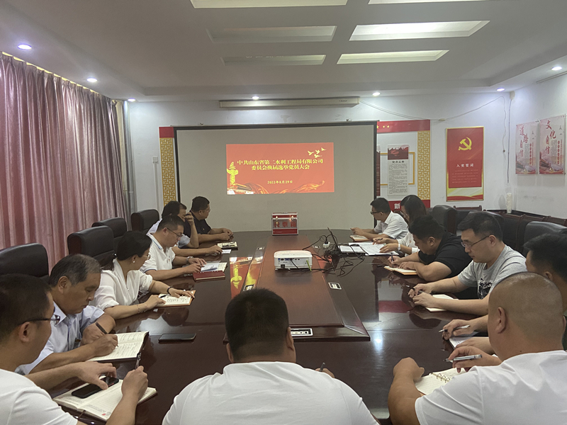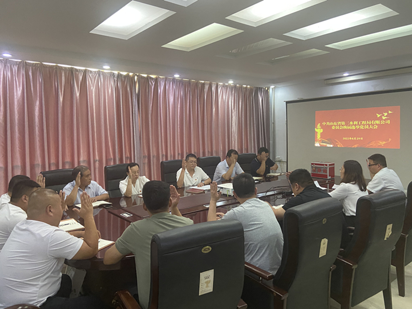 经山东水总党委批准,8月29日下午,二局有限九州平台党委召开全体党员大会,进行党委换届选举工作。会议由党委书记、执行董事、总经理王传波主持,九州平台全体党员参加。