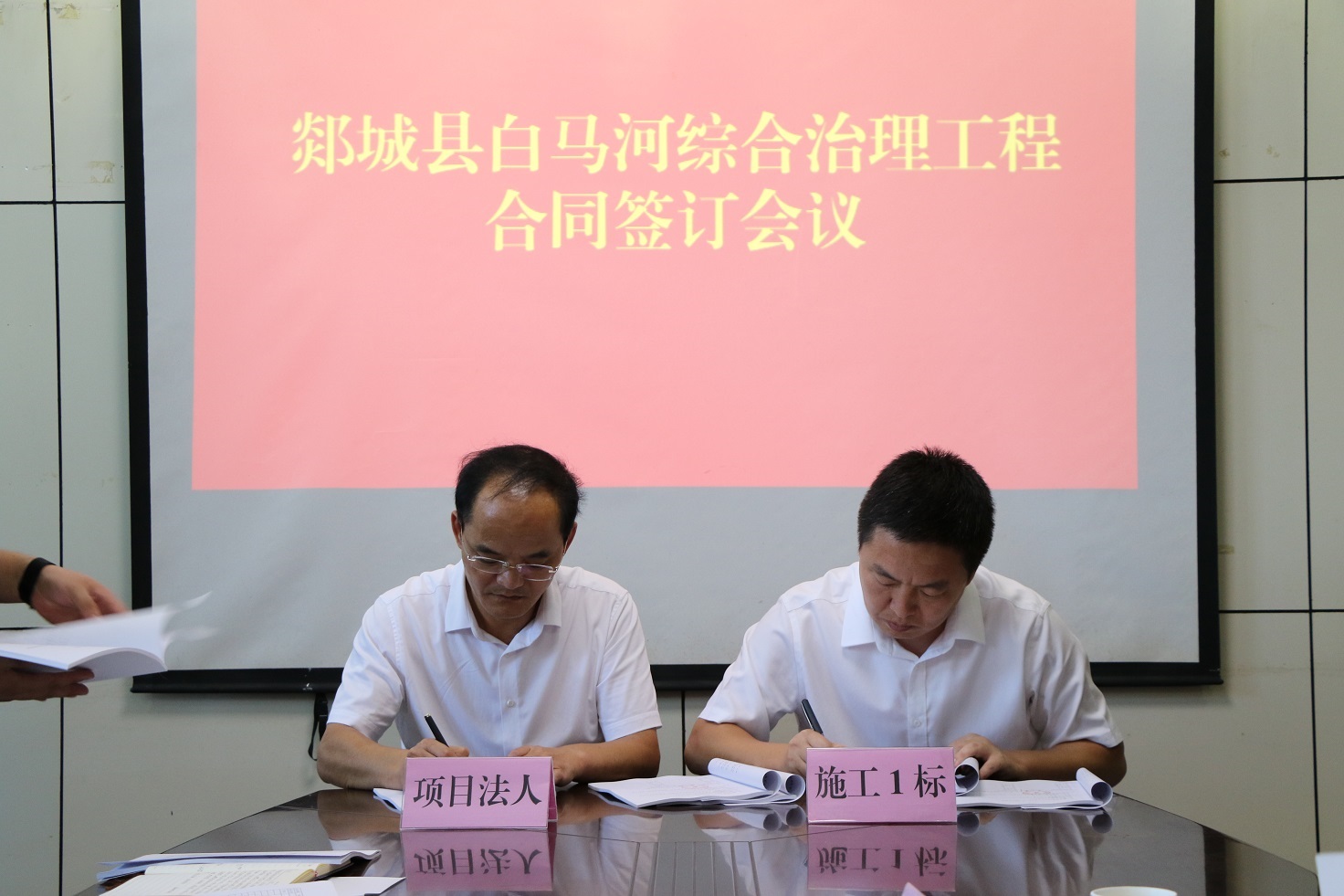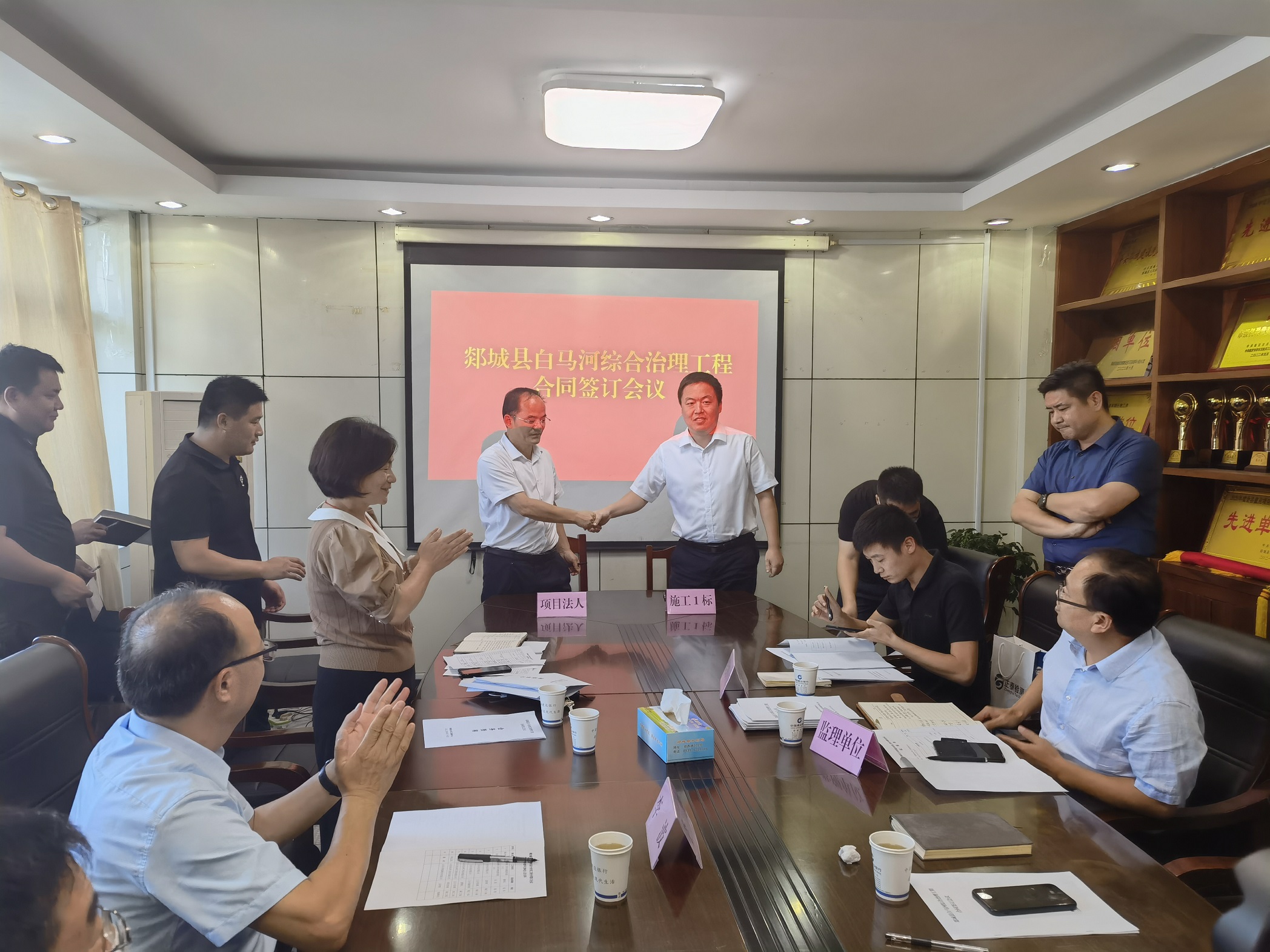 9月13日下午,郯城县白马河综合治理工程合同签约仪式在郯城县水利局举行。九州平台党委副书记、董事、总经理靳文硕出席签约仪式,第三分九州平台副总经理徐浩陪同。