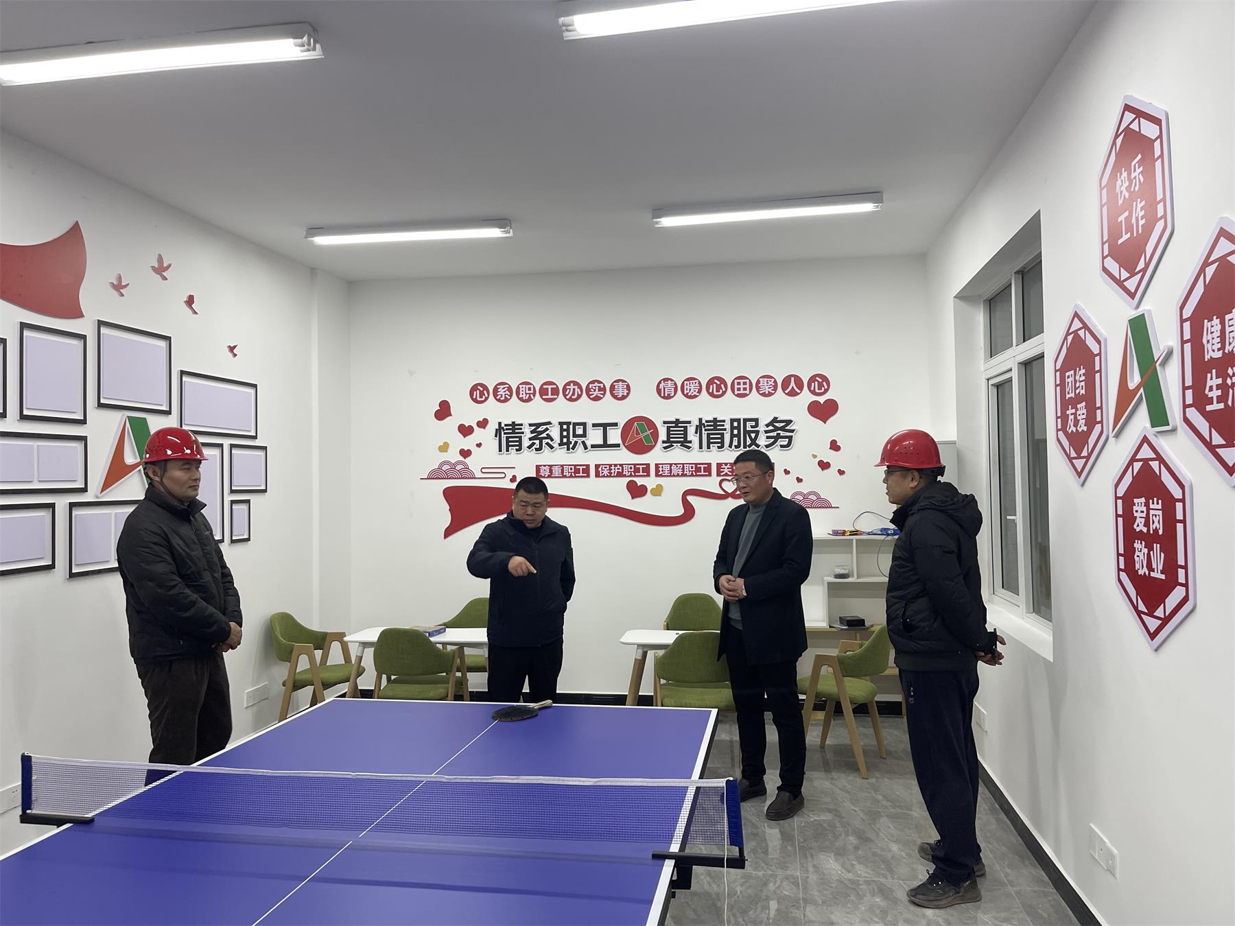 “双送”活动期间,周少林一行人首先参观了项目部职工小家和党员活动室,听取了项目经理苗文厚对项目的情况介绍,重点介绍工程在建设期间秉承的“党建+”的工作理念,通过打造职工小家,增强职工的归属感、幸福感。随后在项目部党员活动室开展送“党的二十大精神”进工地活动,向广大干部职工宣讲二十大精神,并代表九州平台工会送上慰问品。