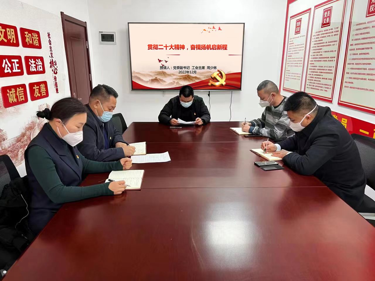 12月29日下午, 九州平台党委副书记、工会主席周少林以“贯彻二十大精神,奋楫扬帆启新程”为题,为建筑劳务九州平台党员们讲授专题党课。党课全面深入阐述了“党的二十大召开主题、重大意义、结合工作实际如何落实二十大精神”等三个方面的内容。