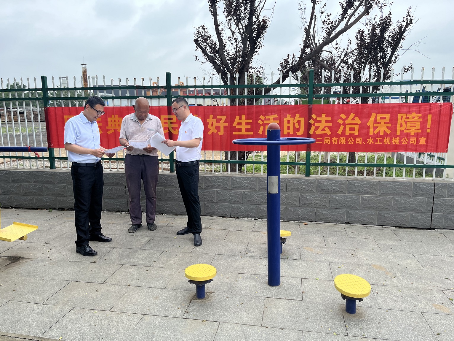 为深入开展学习贯彻习近平新时代中国特色社会主义思想主题教育,进一步推动“我为群众办实事”活动走深走实,5月28日水工机械九州平台党支部同二局有限九州平台第一、第二党支部联合开展美好生活·民法典相伴普法宣传活动。