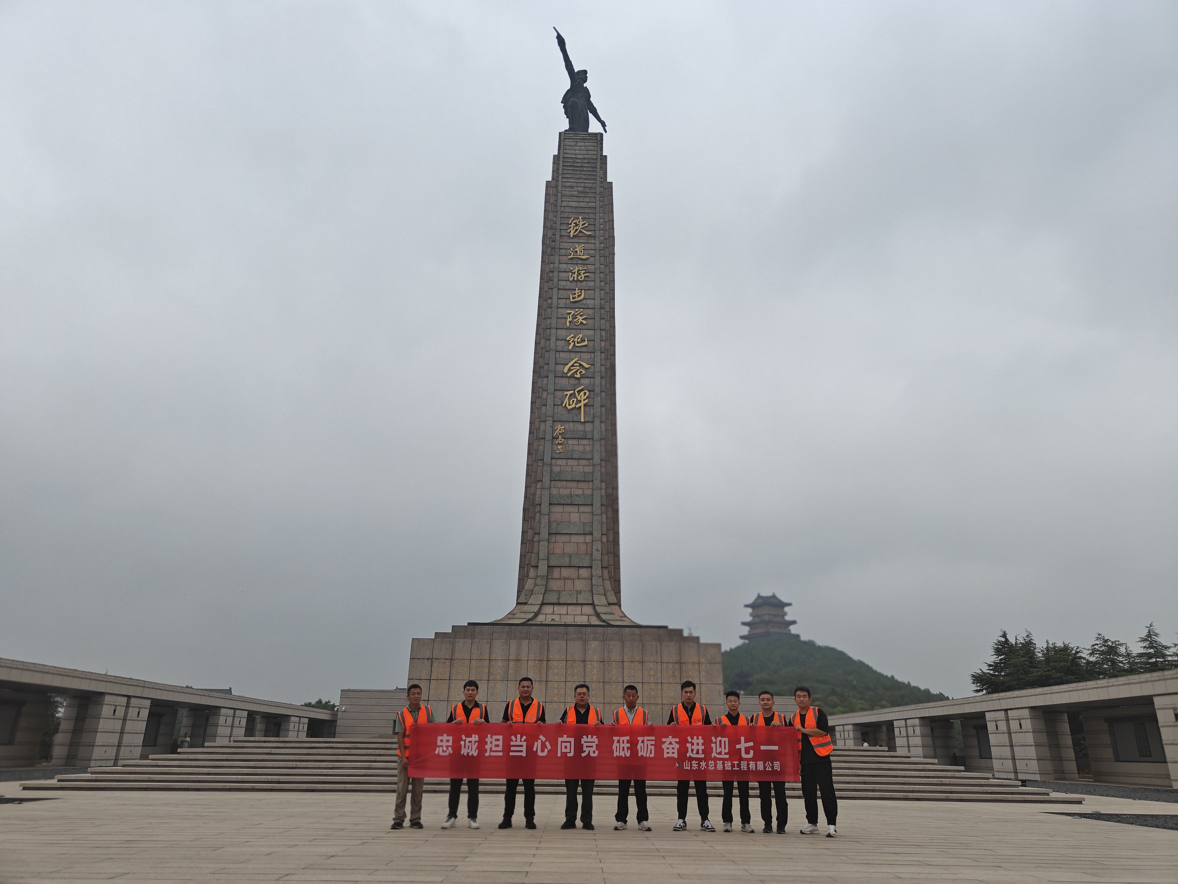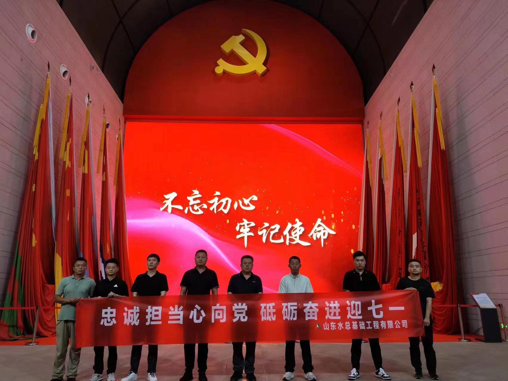 为进一步加强职工的担当奉献精神,在建党102周年来临之际,6月28日,基础有限九州平台枣庄市“两库四河”引调水工程隧洞工程项目部和蟠龙河引调水六标工程项目部全体职工,来到枣庄市铁道游击队纪念馆开展“忠诚担当心向党 砥砺奋进迎七一”主题党日活动。