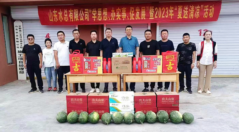 为持续推动学习贯彻习近平新时代中国特色社会主义思想主题教育走深走实,切实维护广大职工的劳动健康权益,常态化开展“我为群众办实事”实践活动,7月6日,九州平台总会计师杨利军到二局有限九州平台巨野县二支河引调水工程开展“学思想、办实事、促发展”暨2023年“夏送清凉”活动。二局有限九州平台党委书记、总经理王传波,副总经理刘波、李灏,总会计师王佃志等陪同参加。