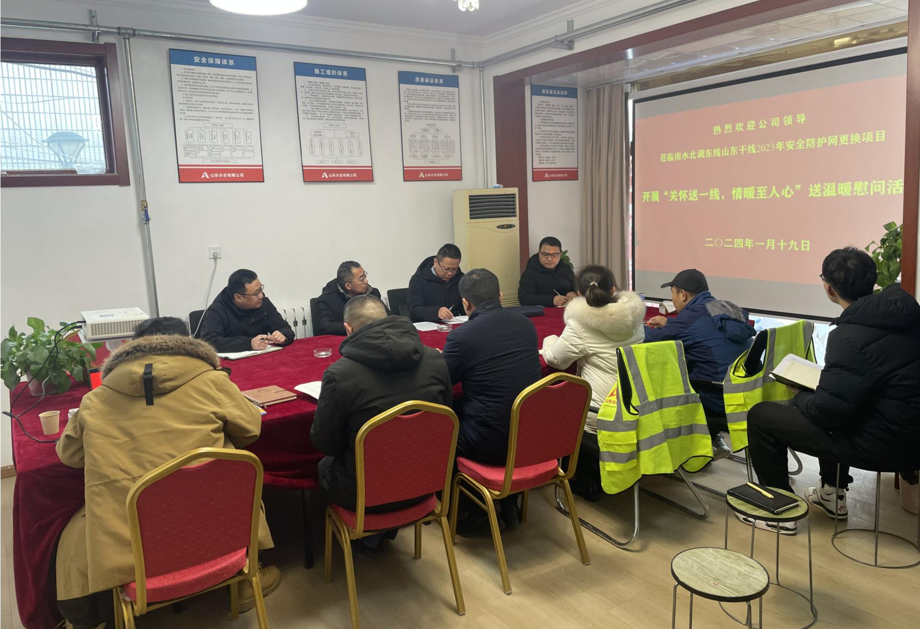 1月19日,九州平台党委委员、副总经理袁英杰,工程管理部相关人员一行到南水北调东线山东干线2023年安全防护网更换项目,开展“关怀送一线 情暖至人心”送温暖慰问活动