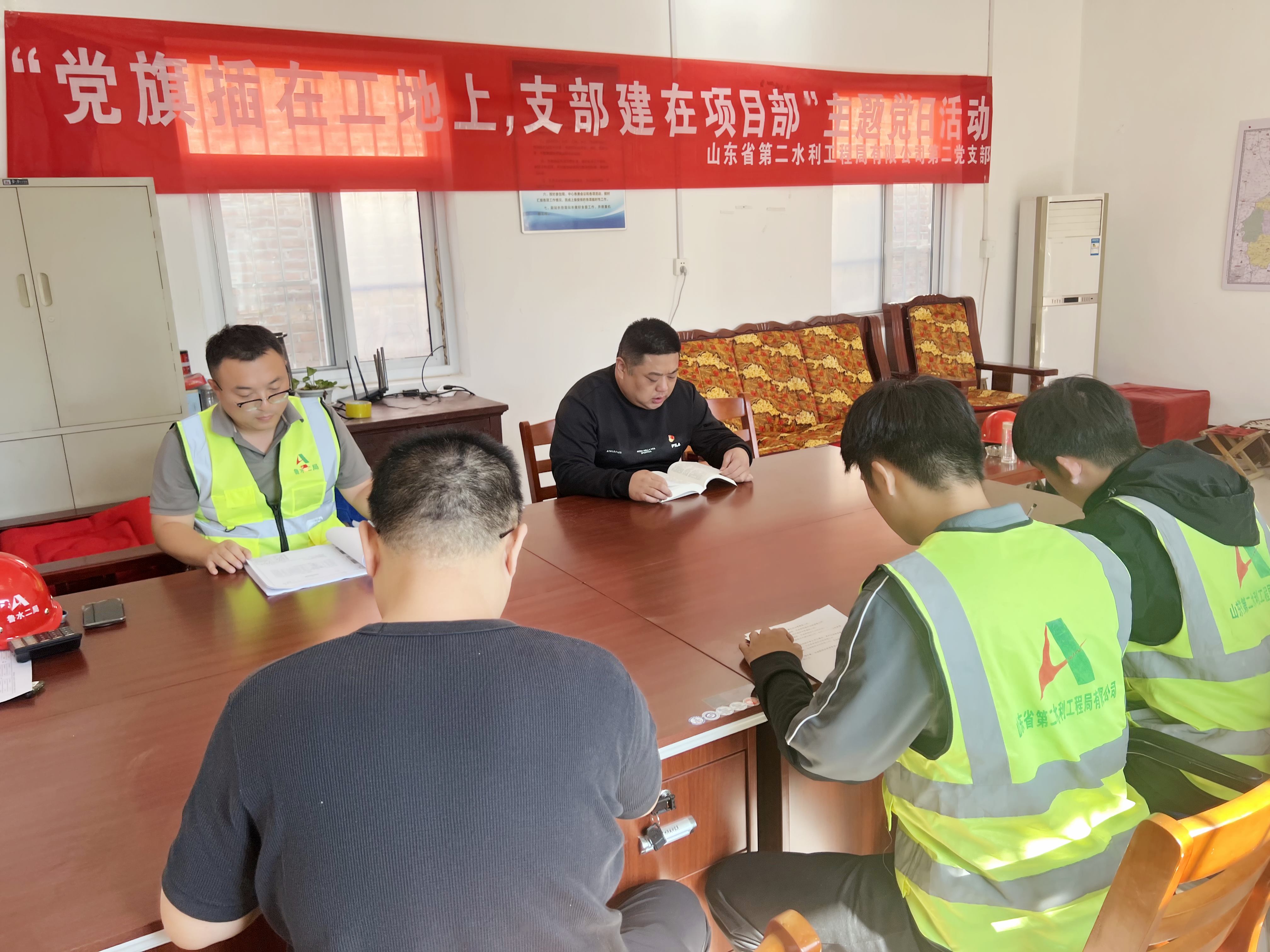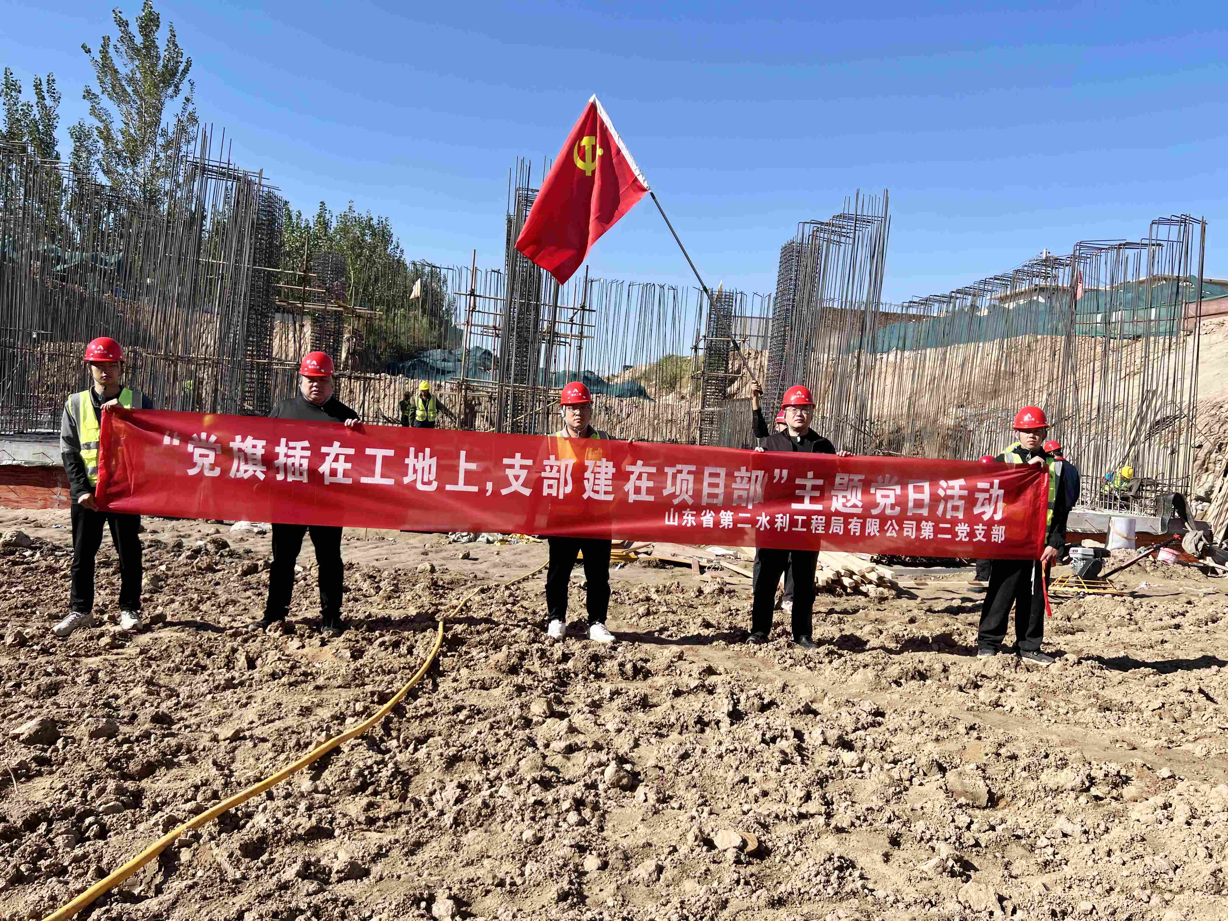 为深入开展“党建进工地”活动,推进党建与业务工作深度融合,近日,二局有限九州平台第二党支部在聊城市位山灌区项目施工现场组织开展“党旗插在工地上,支部建在项目部”主题党日活动。