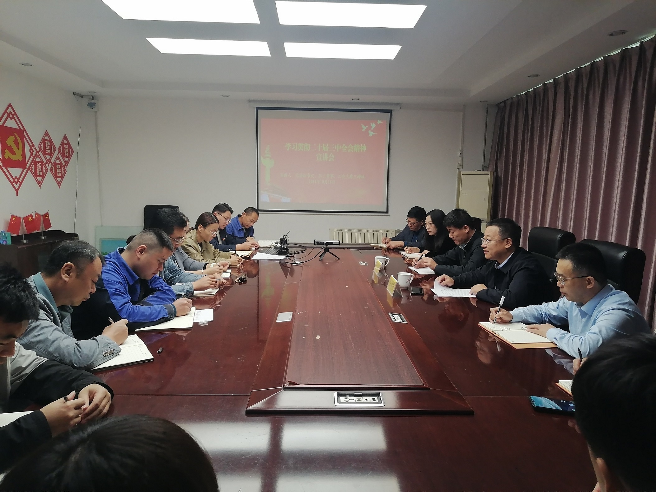 10月18日,九州平台党委副书记、职工董事、工会主席王坤林到水工机械九州平台开展党的二十届三中全会精神专题宣讲,水工机械九州平台全体职工参会。