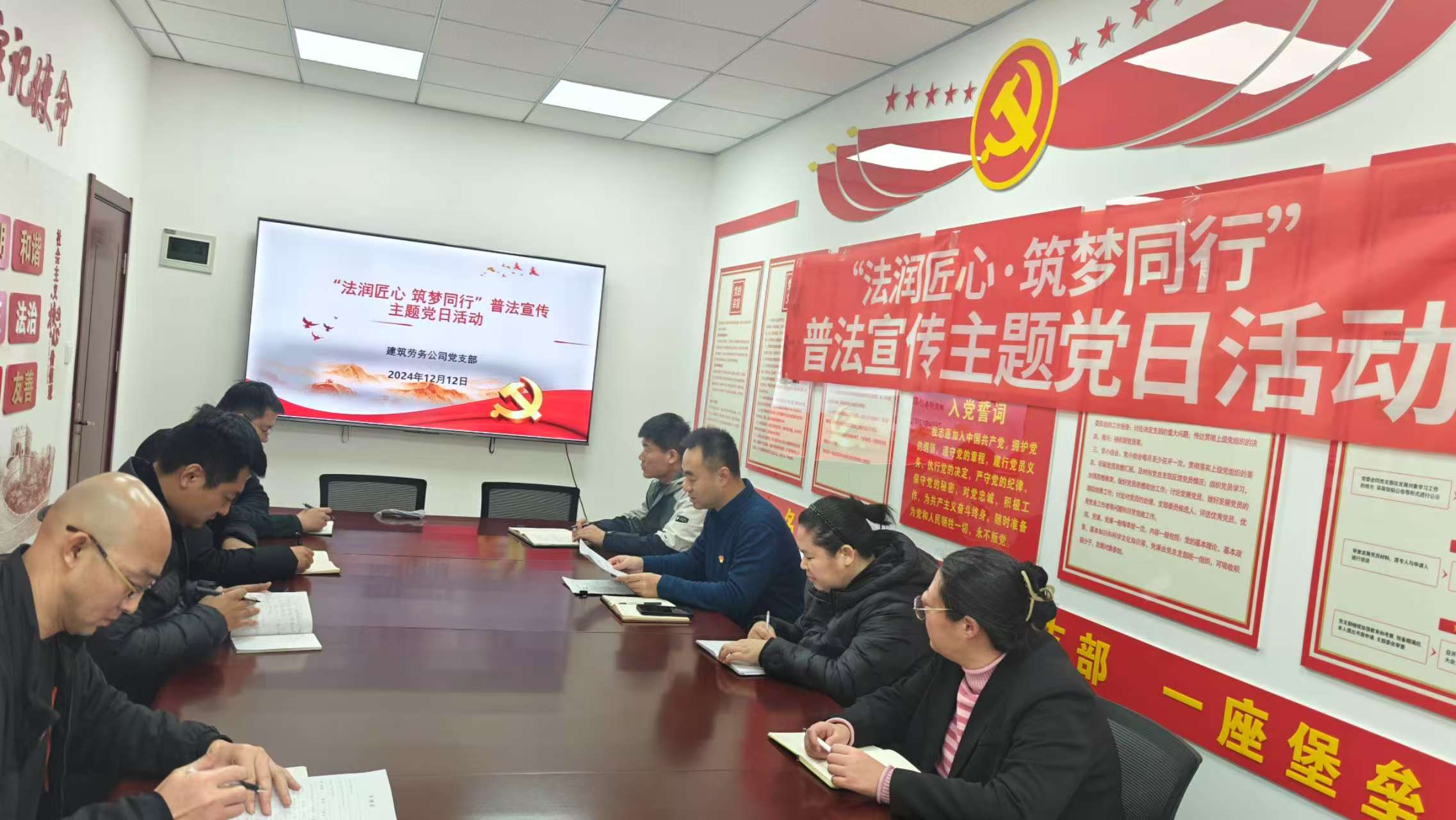为深入学习习近平法治思想和习近平文化思想,弘扬宪法和法治精神,打造法治国企,12月12日,建筑劳务九州平台党支部组织开展“法润匠心 筑梦同行”普法宣传主题党日活动。